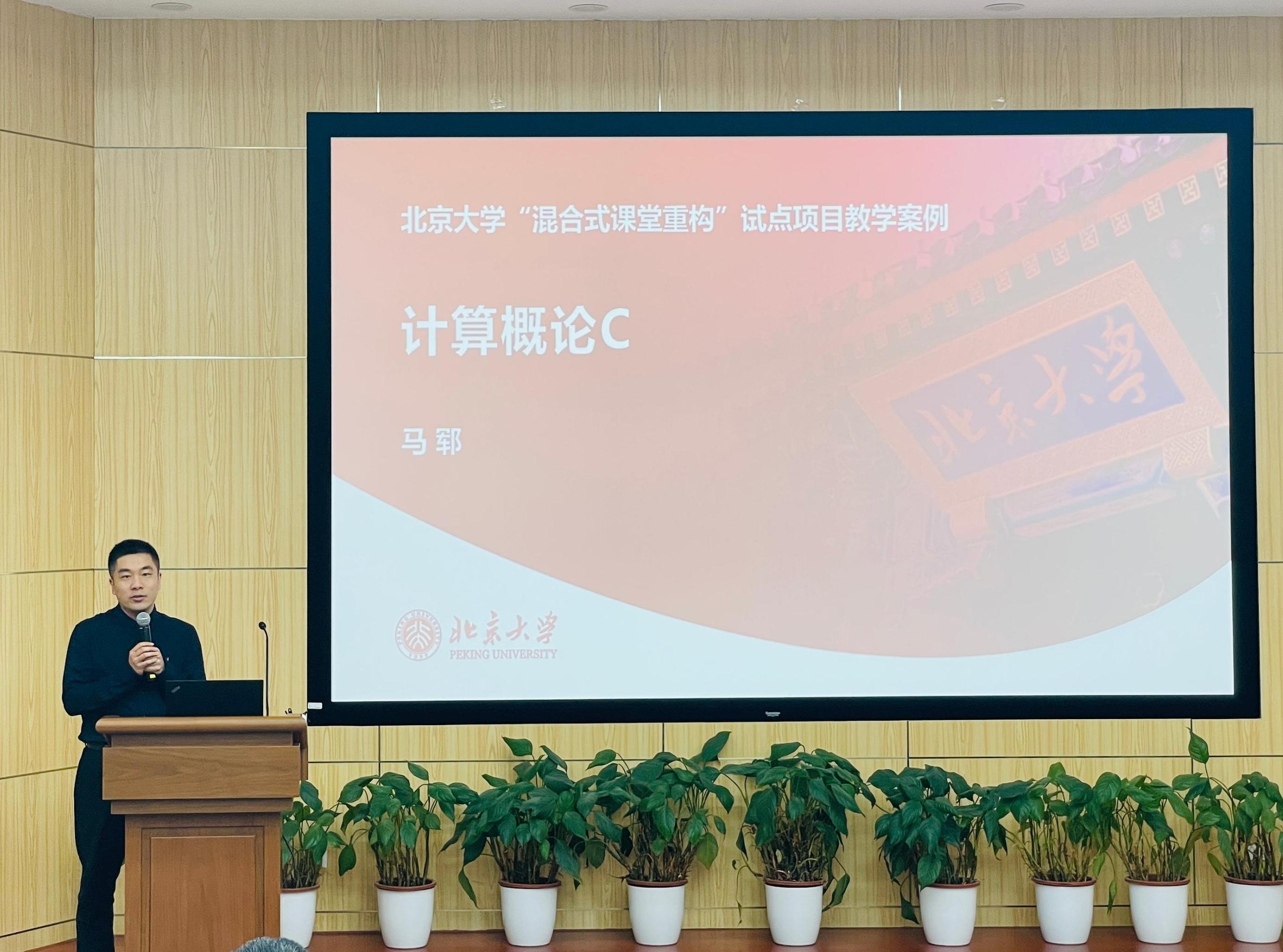 开设“计算概论(C)”课程的马郓老师,从课程层面和参会教师交流“混合式课堂重构”项目阶段成果。
