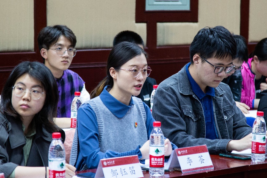 会上,与会师生共同观看了电视剧《觉醒年代》片段,回顾了从1915年《青年杂志》问世到中国共产党成立这一段风云激荡的伟大历史。2019级本科生熊伟民、吴泓霖就此展开,讲述了革命先烈邓中夏与赵世炎的英雄事迹。邓中夏、赵世炎等青年仁人志士为了民族复兴不怕牺牲、砥砺前行的革命精神令各位与会成员备受鼓舞。