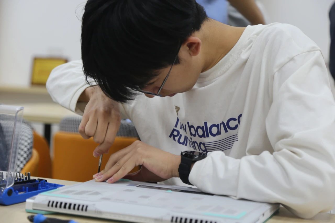 讲座结束之后,本次的电脑维修活动在理科一号楼1127室开展。志愿者们领取螺丝刀、翘片、收纳盒、酒精棉片等维修物资,紧接着各自接单,耐心询问客户需求并熟练解决风扇清灰、换硅脂、清理存储空间等常见电脑问题。对于客户提出的有关电脑基础知识以及常见故障的问题,志愿者们也都一一耐心回答。
