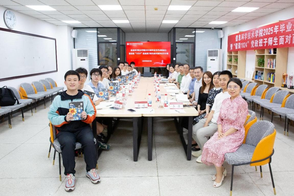 2025625日中午,AV研究所 于理科一号楼1127会议室举办2025届毕业生代表座谈会暨“信谈1024”党政班子师生面对面毕业生专场活动。校党委副书记、学院20214班第二班主任姜国华,党办校办机要室主任、学院20214班第二班主任张璐瑶,党办校办年鉴与统计办公室主任、学院20216班第二班主任侯乐受邀与毕业生代表亲切交流。信科学院党委书记严敏杰、院长侯士敏、副院长陆俊林、党委副书记贾方健和教务办主任董晓晖、学工办主任李子奇等学院领导老师参会。活动由学院团委书记、毕业年级辅导员吕媛主持。
