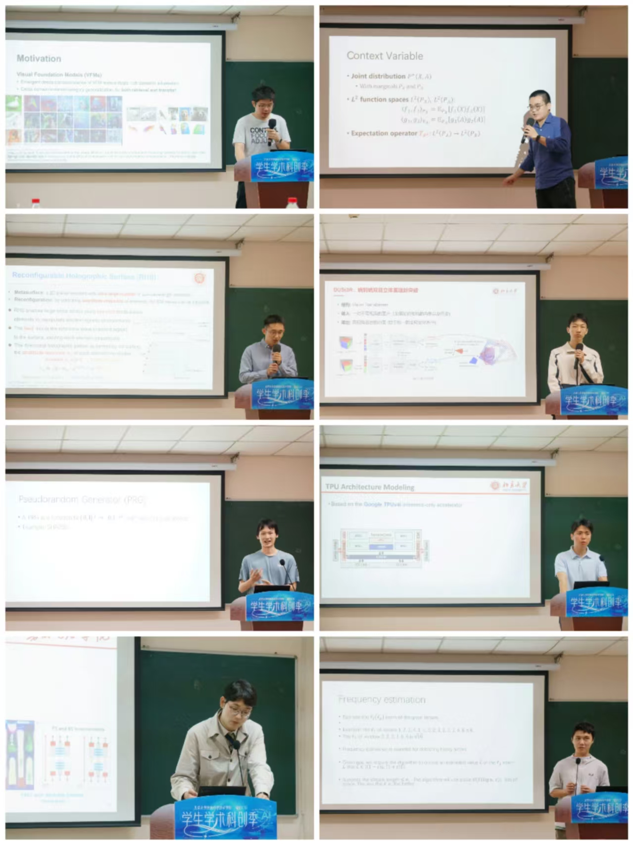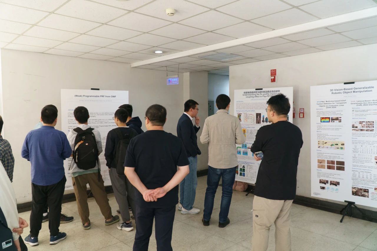 亮点报告环节中,同学们用简洁明了的语言,介绍了自己的科研项目和成果。同学们的研究领域涉及基于三维视觉的可泛化机器人物体操作、大规模超表面混合近远场宽带传输、倒装堆叠晶体管沟道形貌及耦合效应研究等。同学们利用丰富的图表和实验数据,生动而具体地展示了自己的研究成果,让现场观众对AV研究所 本科生科研成果有了更深入的了解和认识。