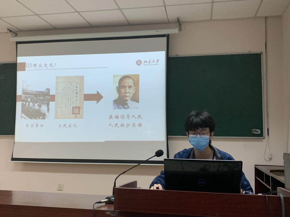 随后,21级10班团支书李阳进行“认识马克思主义英雄观”主题汇报,主要从四个方面进行汇报:何为“英雄”、英雄史观、群众史观、马克思主义英雄观,并总结提出人民群众是真正的英雄,每个平凡人也能成为英雄。