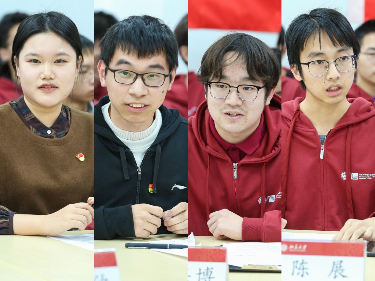在自由交流环节,学生第一党支部代表万雨欣谈到作为党支书能够切身体会到党对青年学生的引领。信班的专业组成之一应用物理专业是强基计划的重要组成部分,从其诞生之初就着眼于国家重大战略需求,本就应当自觉承担起努力学习专业知识、刻苦锻炼专业技能的义务,应该同心同德、凝心聚力,更好地坚定理想信念、牢记初心使命、勇担时代重托。黄佳辉谈到,作为党员,同时作为强基计划学生,除了完成个人学业,也肩负着建设国家基础学科的使命。组织生活中的批评与自我批评促进了个人的反思和提升,学科的实践精神也时刻要求青年学子锤炼本领,投入四个面向的事业中。