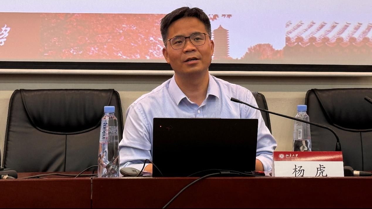 杨虎以“传承红色基因,厚植家国情怀——北大风物与人文精神”为主题,带领师生党员重温历史脉络,体悟文化内涵,传承北大精神。他从老北大到京城西北郊的燕园,为师生们讲述了北大校园内一草一木、一砖一瓦等风物中蕴含的家国情怀与人文精神。在120年的发展历程中,北大形成了悠久而厚重的历史,蔡元培、朱德熙等老先生们提出“思想自由,兼容并包”“为国求学,努力自爱”“以天下国家为己任”“敢为天下之先”,对北大精神进行了最好的诠释。北大精神激励着一代又一代学子投身于国家进步和民族复兴的伟大事业。北大以“外未名而内博雅”的精神气质,为伟大的中华民族谱写出最美的华章。
