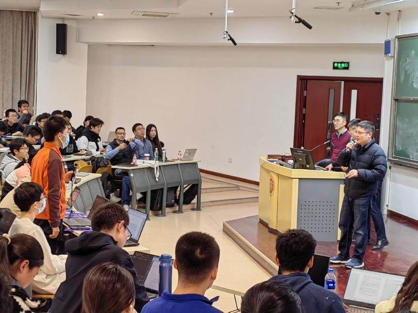 副院长王润声教授主持了本次活动;亚马逊云科技的朱耀飞、乔敬霄、李亦钊等现场支持本次活动,并参与了学生问题的解答。