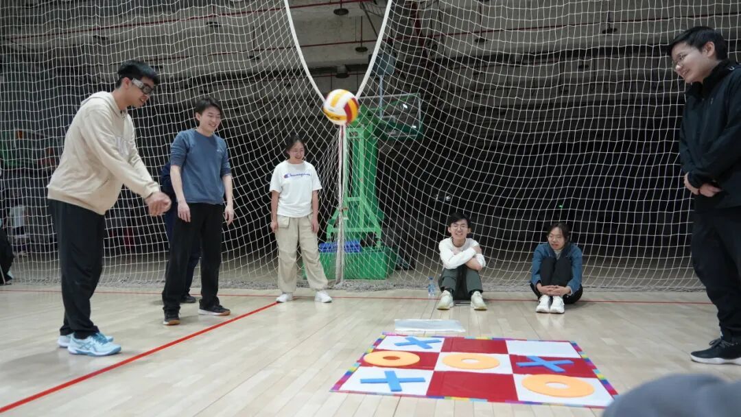 赛场上,身影跃动,热情满溢。个人垫球环节中,选手们凝神专注,指尖稳稳控球,连续垫击的身影成为赛场最动人的风景,每一次突破自我的连击都赢得阵阵喝彩;垫球九宫格对抗里,双人相互竞争,瞄准落点、精准垫击,率先连线的瞬间点燃欢乐氛围,策略与技巧的碰撞让趣味拉满;传球入框环节,选手们沉着发力、瞄准入框,细腻的传球技术尽显排球基本功,每一次精准命中都引发全场欢呼;3V3 团体友谊赛更是将氛围推向高潮,队员们默契配合、攻防有序,传球、垫球、扣杀一气呵成,团队协作的力量在赛场绽放,也让三个学院的青年学子之间的情谊在并肩作战中不断升温。
