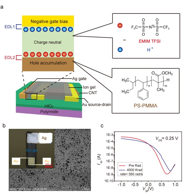 图2. 离子胶碳纳米管抗辐照晶体管和集成电路辐照加固机理