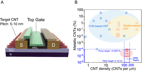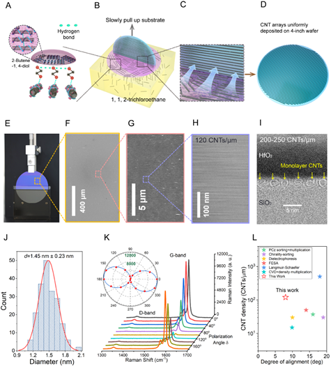 图二 高密度、高纯度半导体碳管阵列的制备和表征