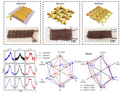 电子学系、纳米器件物理与化学教育部重点实验室胡又凡研究员课题组与香港理工大学纺织及制衣学系郑子剑教授课题组针对新型可穿戴织物压力传感器展开合作研究,实现了可洗涤的基于纳米摩擦发电机的织物压力传感器。
