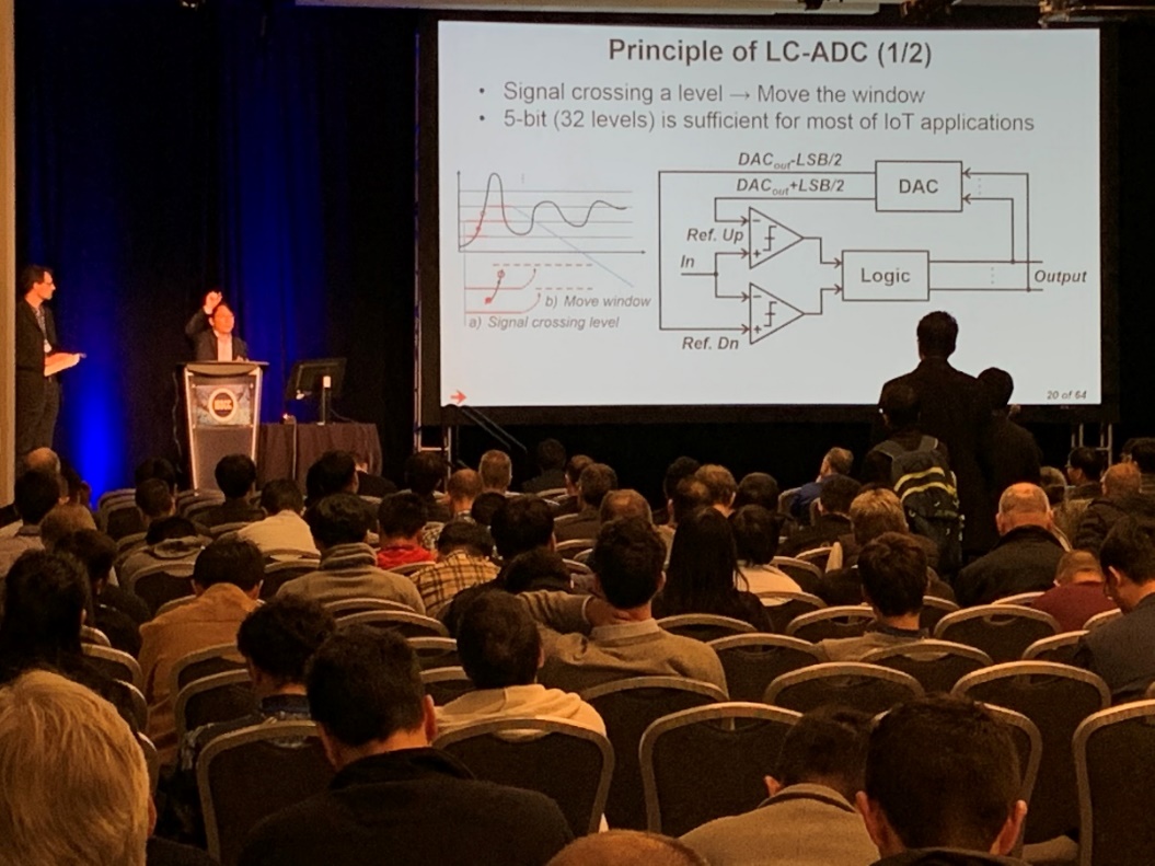 该工作以《面向物联网应用的基于异步流水线事件驱动型架构和时域屏蔽LC-ADC技术的57nW软件定义常开唤醒芯片》(A 57nW Software-Defined Always-On Wake-Up Chip for IoT Devices with Asynchronous Pipelined Event-Driven Architecture and Time-Shielding Level-Crossing ADC)为题,在2020年2月18日于美国旧金山举行的国际固态电路峰会ISSCC(International Solid-State Circuits Conference)上发表。由于受新冠疫情影响,文章由合作发表单位上海芯翼科技有限公司总经理、AV研究所