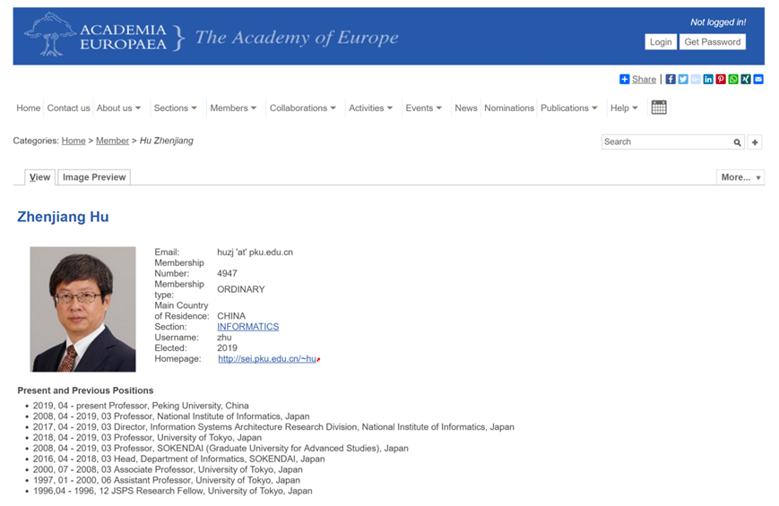 欧洲科学院(Academia Europaea)成立于1988年,总部设在英国伦敦,由英国皇家学会与多个代表欧洲国家最高学术水平的国家科学院共同发起,涵盖自然科学、生命科学、社会科学、人文科学、经济学和法律等众多学科领域,是跨地域和学术领域最广泛、学术地位最高、影响最大的国际科学组织之一。欧洲科学院院士主要从欧洲各国科学院院士中选出,是欧洲人文和自然科学界最优秀的科学精英和学术权威。目前,欧洲科学院有院士4000余人,其中包括73位诺贝尔奖获得者、7位图灵奖获得者和15位菲尔兹奖获得者。