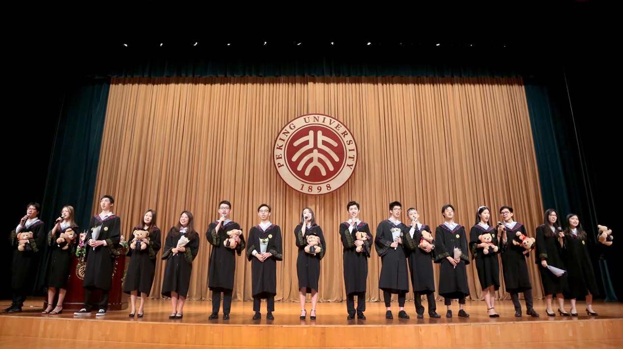 毕业生代表一同演唱了《青春大概》,悠扬的旋律仿佛又带着同学们回想起在燕园的点点滴滴,而逐渐高昂的歌声又激起了大家在未来仰望星空、奋力逐梦的信心。精彩的节目掀起了典礼的小高潮。