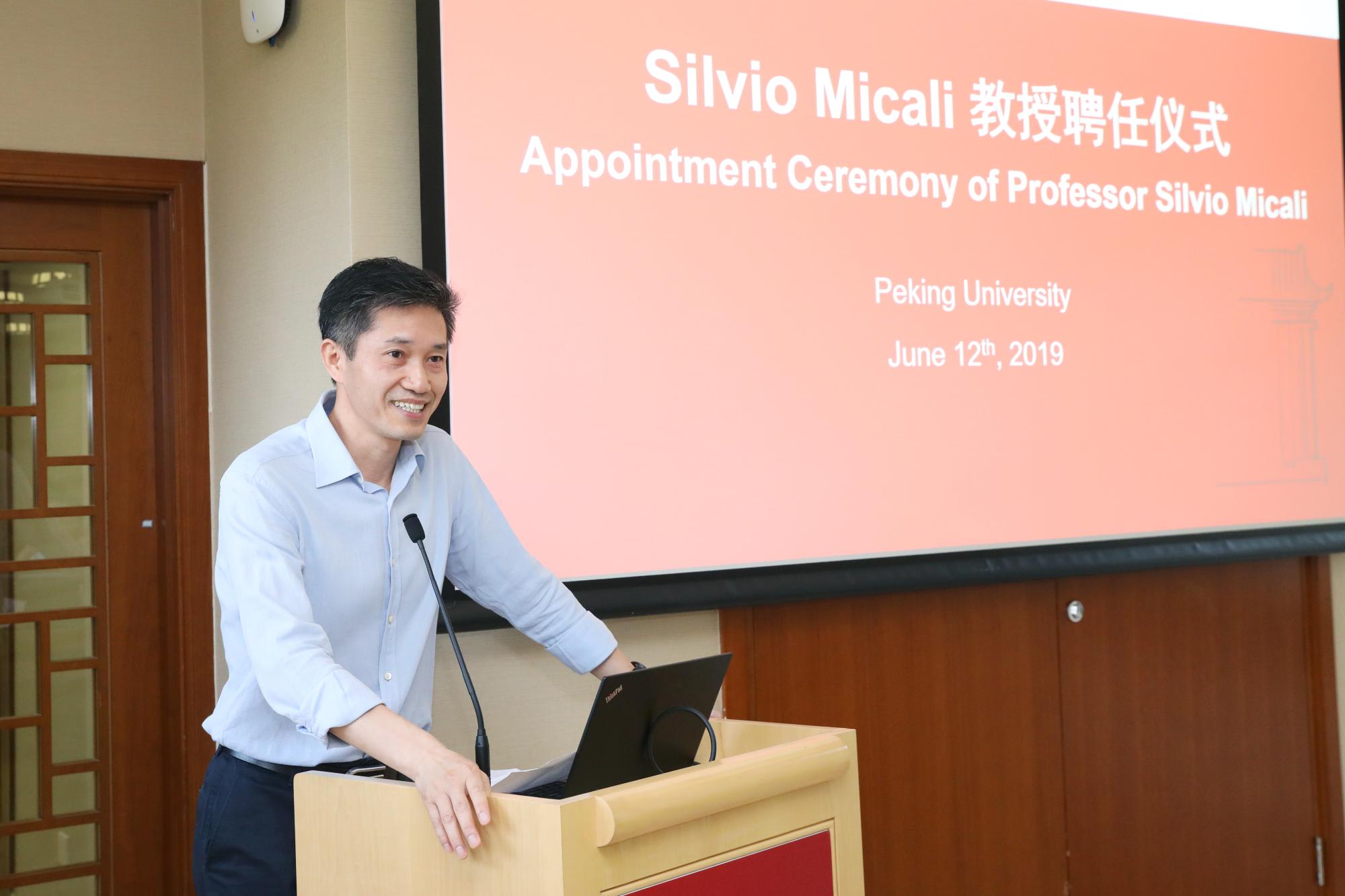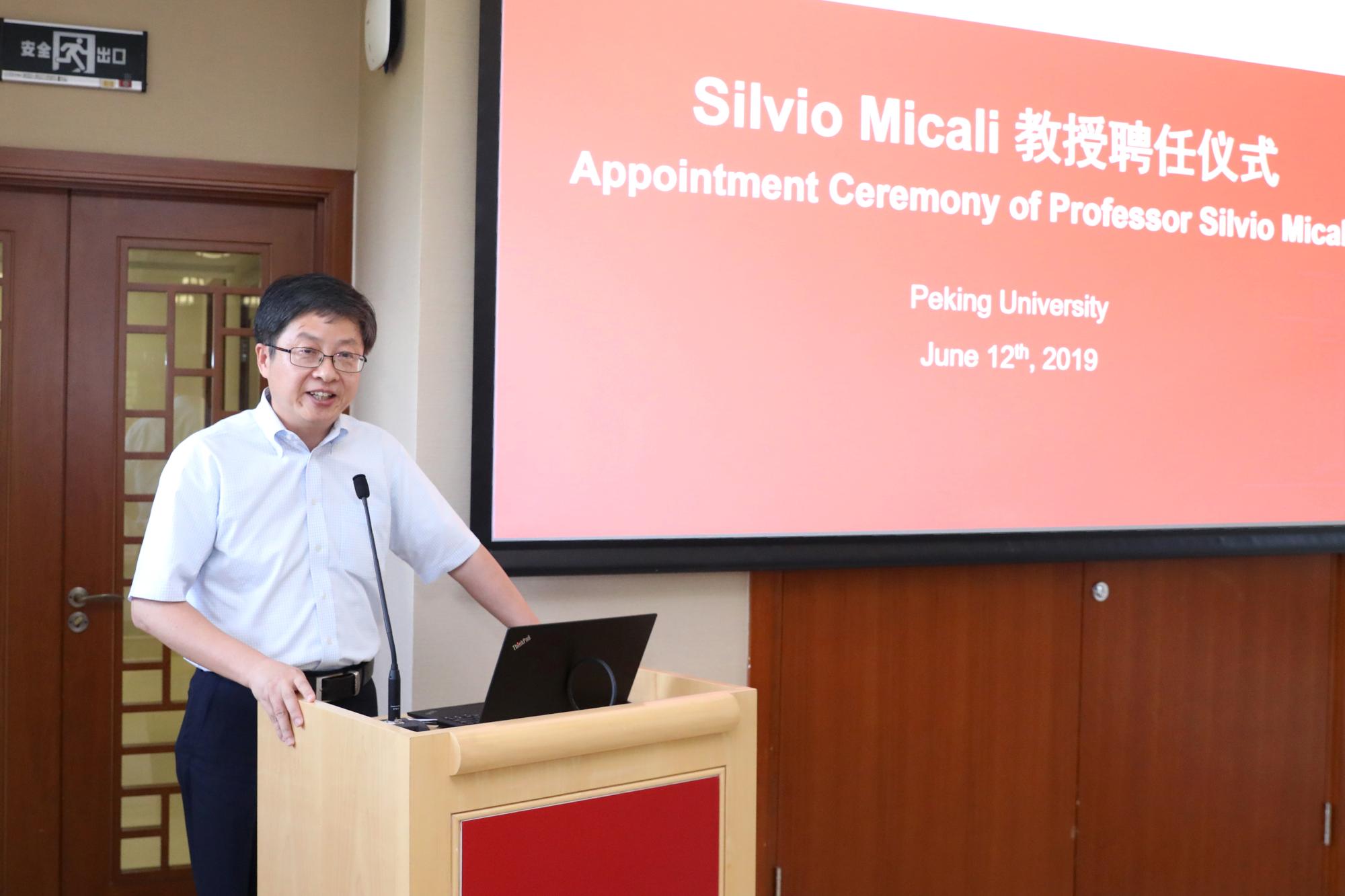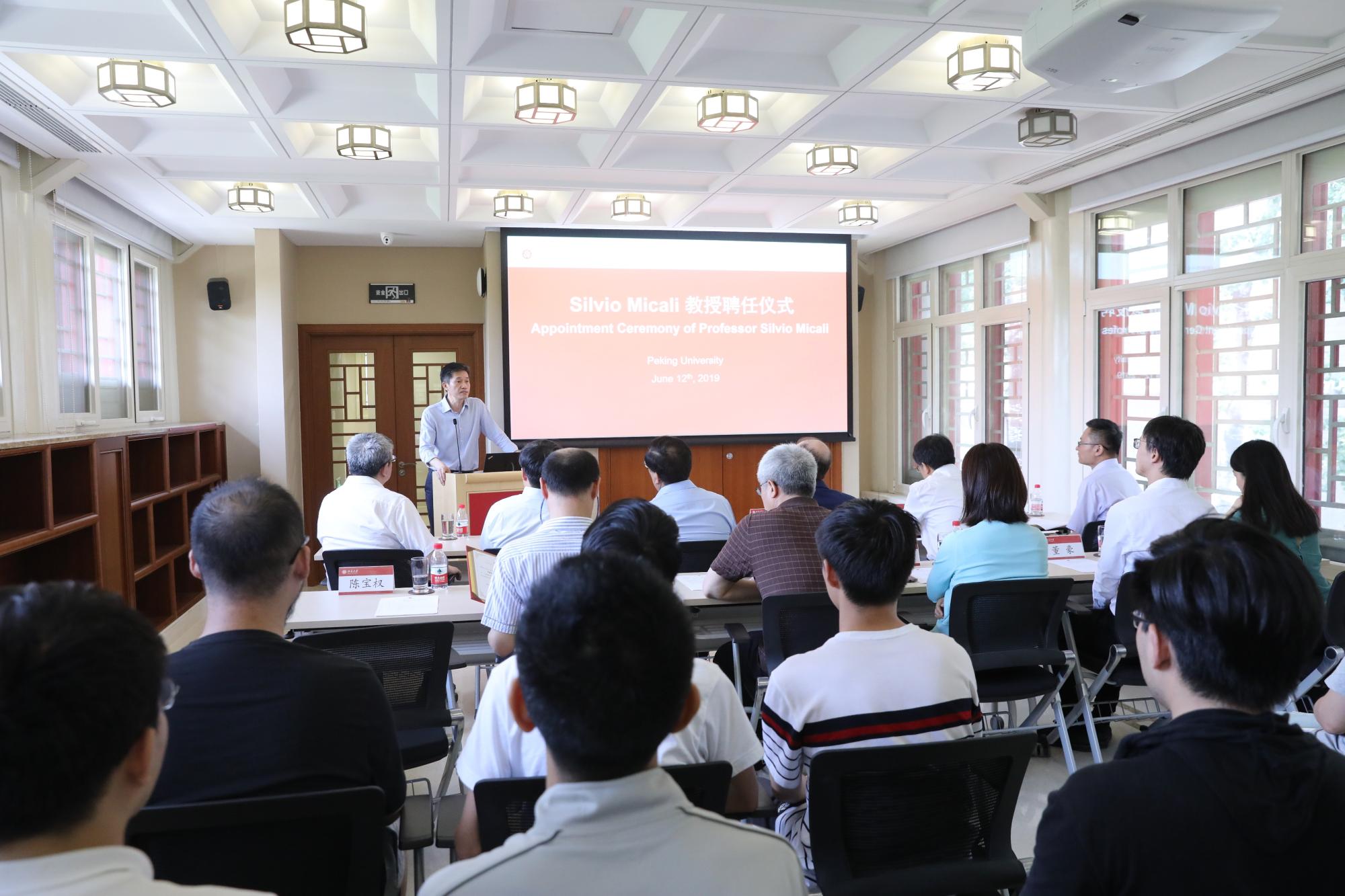 访问讲席教授聘书。来自信息学院、数学科学学院等单位的近百名师生参加讲座并见证聘任仪式。活动由前沿计算研究中心执行主任陈宝权教授主持。
