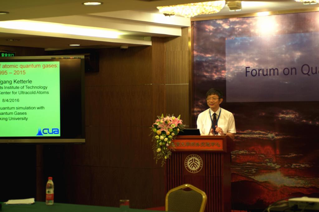 副校长王杰,麻省理工学院教授、2001年度诺贝尔物理学奖获得者Wolfgang Ketterle,维也纳大学教授、奥地利科学院院士Joerg Schmiedmayer,德国汉堡大学教授Andreas Hemmerich,德国波恩大学教授Michael Koehl,以及多位来自国内冷原子物理领域的专家学者出席。本期论坛由信息学院量子电子学研究所所长陈徐宗教授主持。