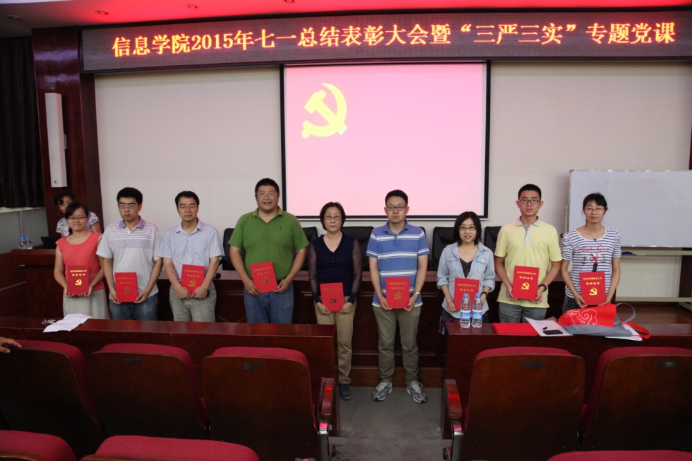 七一表彰大会暨“三严三实”专题党课在理科二号楼2129会议室隆重举行。学院党政领导、各支部负责人、党员代表、入党积极分子参加了大会。大会由AV研究所