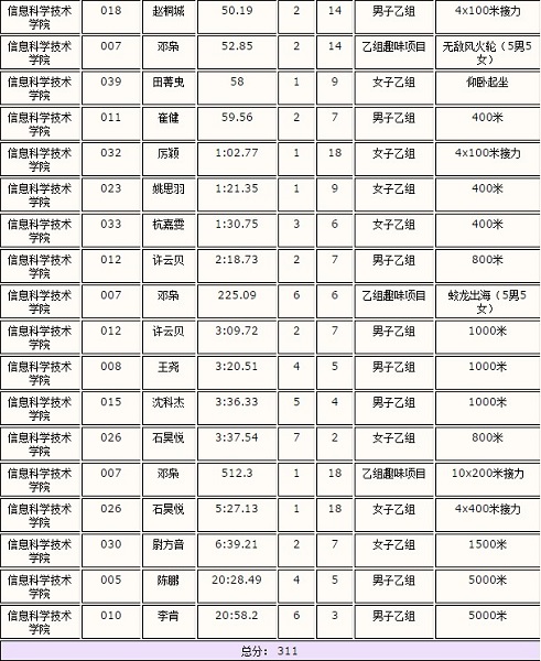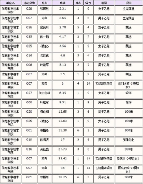 附2:信科总分及排名、信科学生参加各项目成绩: