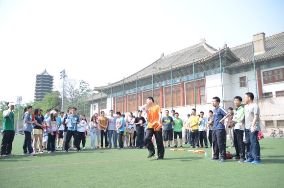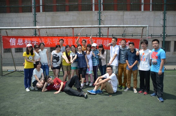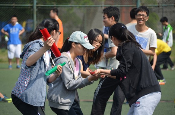 在第一体育场举办第一届寝室趣味运动会,来自学院不同年级的二十余个寝室近百名同学参加了此次运动会。