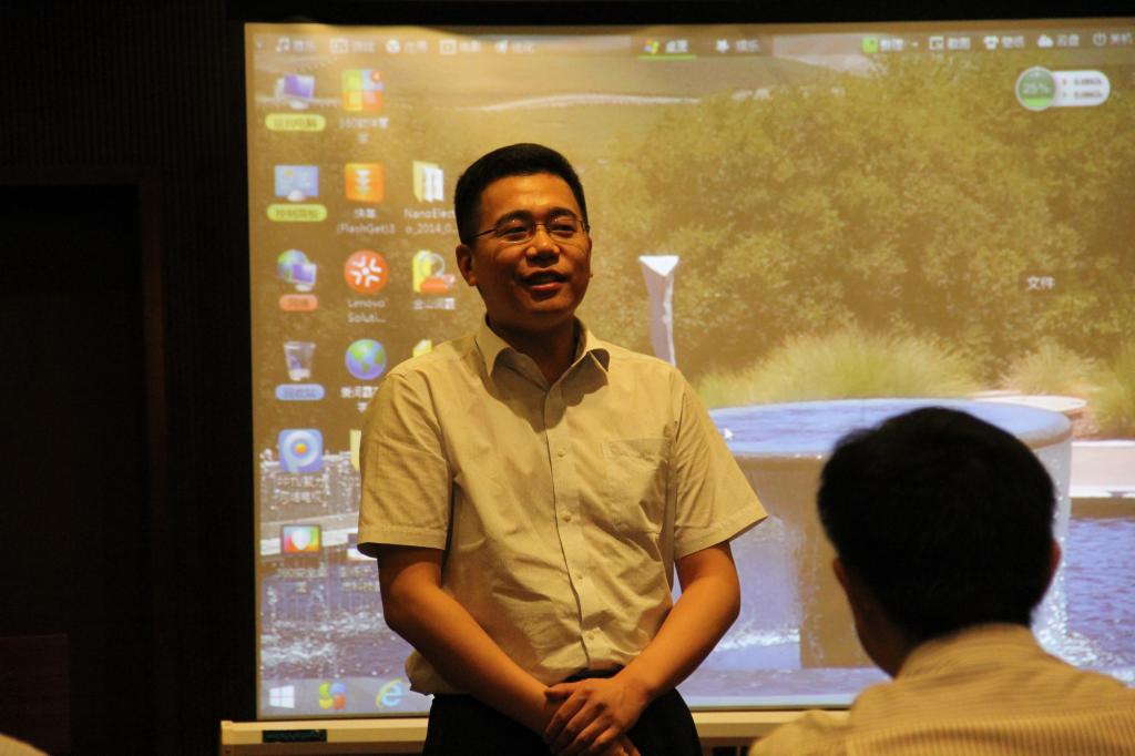 在后半个时段的研讨会上, 中国科学院苏州纳米技术与纳米仿生研究所李庆文研究员、金属研究所孙东明研究员分别以碳纳米管的批量制备、碳纳米管薄膜晶体管和电路为题做了特邀报告。随后,钟华、张盼盼和信息学院电子学系副主任梁学磊教授先后就各自从事的基于高密度碳纳米管平行阵列的射频器件与电路、碳纳米管集成电路的动态响应、显示驱动用碳纳米管薄膜器件研究做了报告。来自北大信息学院、化学学院,清华化工系的数十位与会师生讨论热烈,收获颇丰。