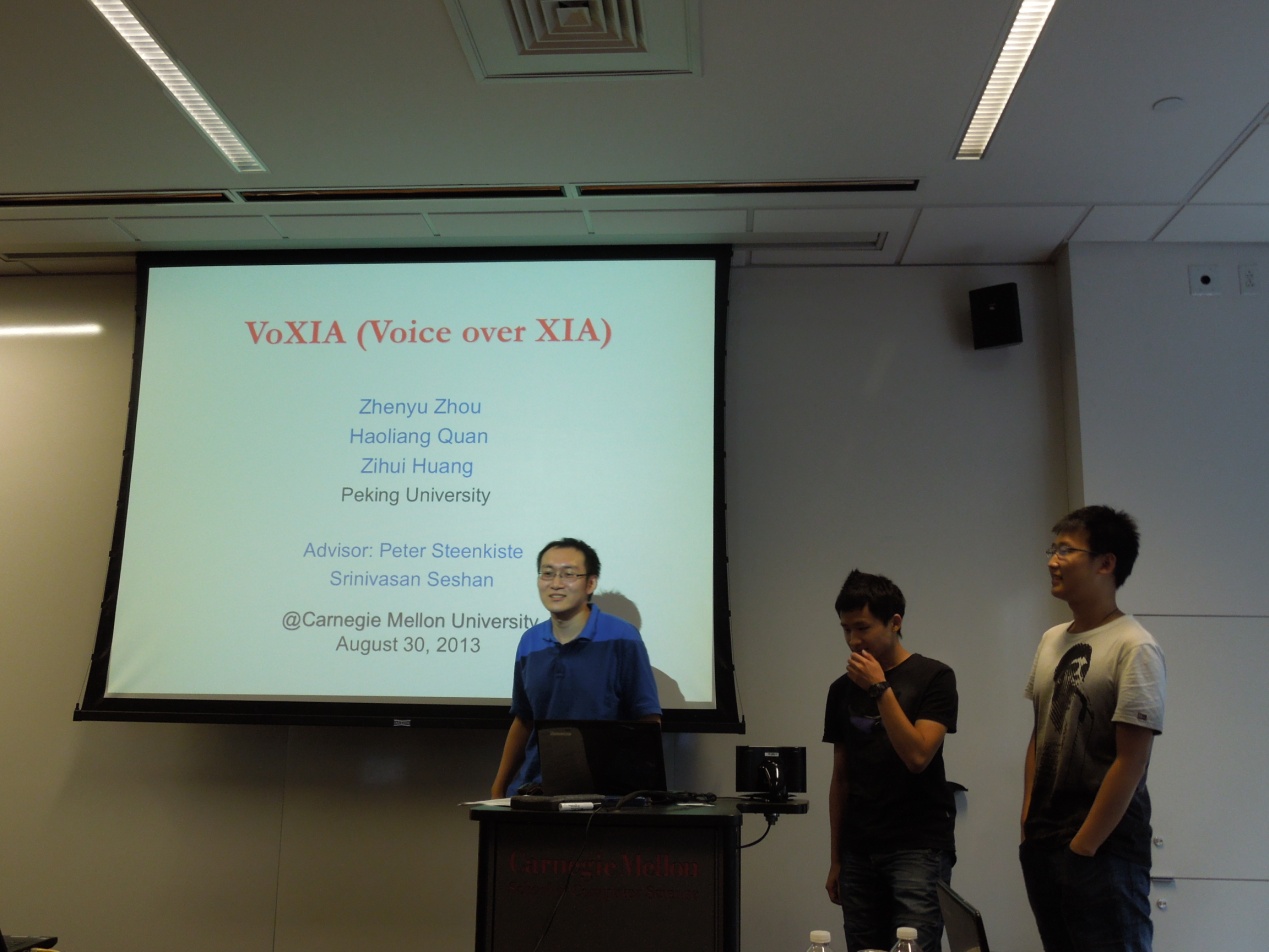 在研讨会上,参加科研实习的北大同学分别介绍了在计算机音乐、神经网络、智能机器人、新一代互联网、数据挖掘、人机交互等领域的研究成果。北大同学通过演讲、现场演示和互动,以非常生动的方式展示了他们在不到两个月的时间内学到的新知识和完成的科研成果。其中有的同学已经把在CMU的研究成果写成了了论文投稿到相关的学术会议。通过此次研讨会,不仅展现了北大学生的科学素养与学习能力,而且体现了北大学生的交流沟通与参加科研工作的能力。