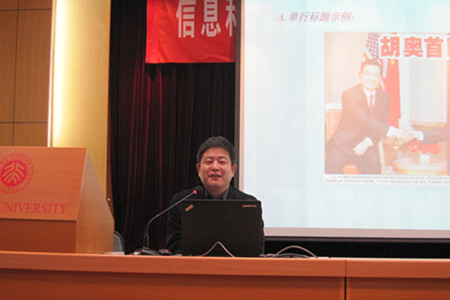 研讨会专门开设新闻写作技巧专题。《北大校刊》常务副主编、中国高校校报协会常务理事汤继强老师作了题为《新闻写作交流》的精彩报告。汤老师结合自身的工作经验和感受,列举丰富多彩的新闻案例,以深入浅出、精彩纷呈的讲解让大家明白了新闻写作中如何远离新闻写作程式化等常见问题,对新闻的重要性和新闻写作的技巧等方面有了更深层次的认识。