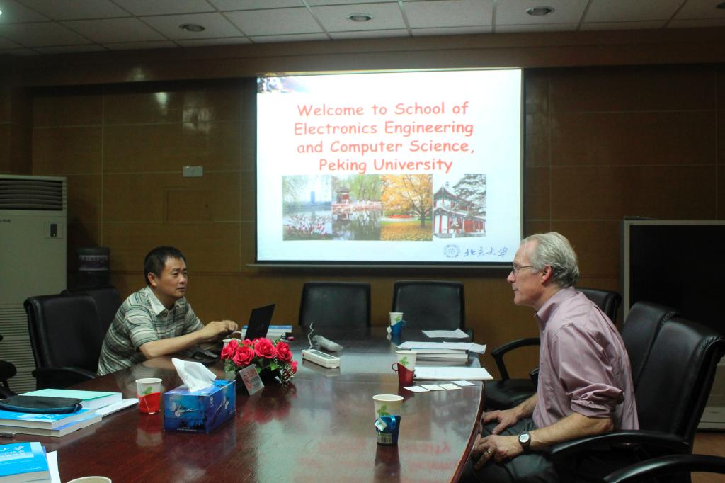 交流座谈会由学院院长梅宏院士主持。梅宏院长首先代表学院向布莱恩特院长的的来访表示热烈欢迎。随后,两位院长相互介绍了各自学院的基本情况、学科建设以及近期主要研究成果,并商讨了教学交流、联合研究、学生交换等方面的进一步合作。