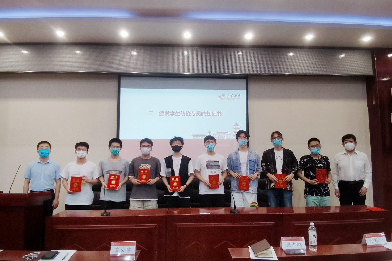 魏中鹏、贾方健为各年级防疫专员颁发聘任证书。通过庄重的仪式,学院鼓励防疫专员自信上岗,光荣履职,在学院各项疫情防控工作中勇于担当、甘于奉献,引领和服务信科青年共同筑牢校园安全屏障。