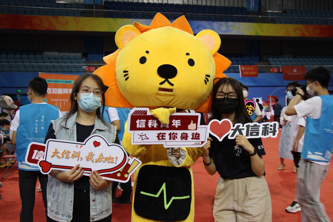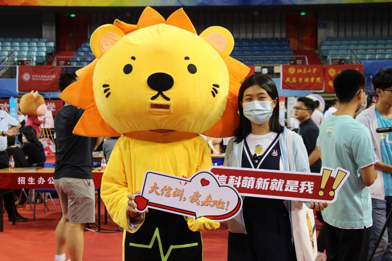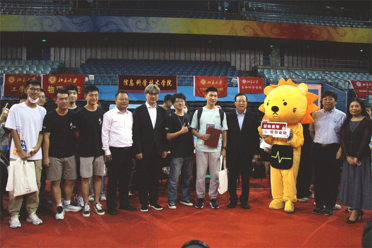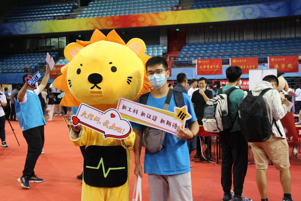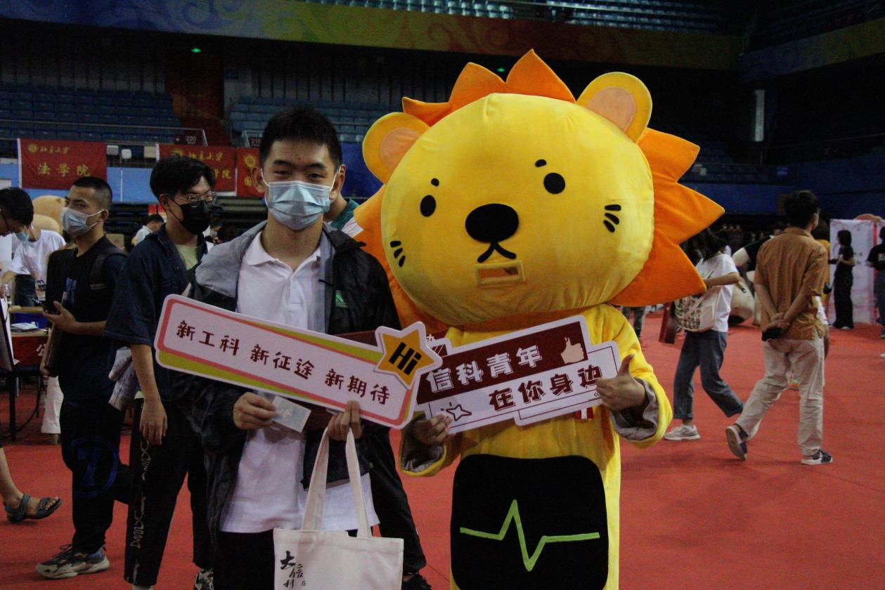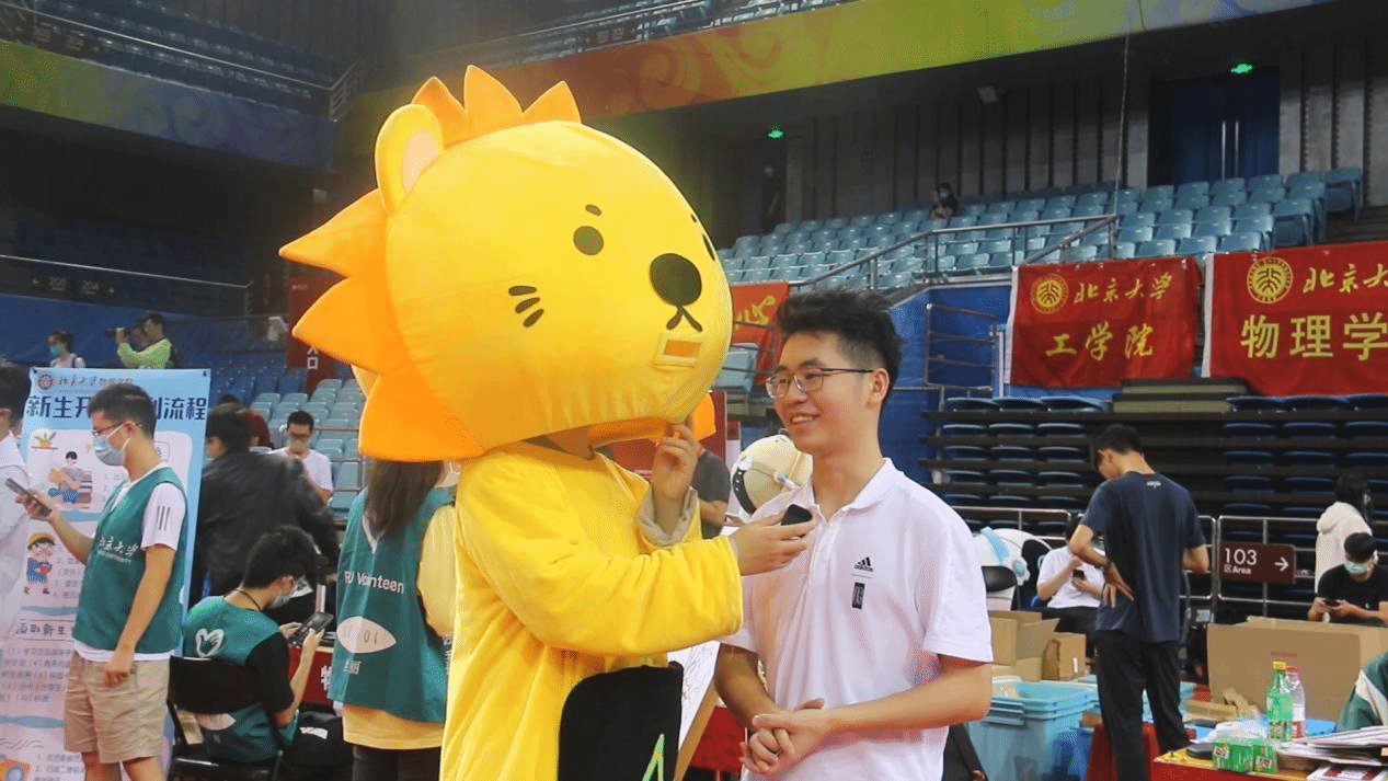 合影区,“攻城狮”无疑是最大的明星。或伸展双臂,或挥手致意,“攻城狮”搞怪的动作使得他很快与新同学们打成了一片,参与拍照的新同学,也在志愿者的帮助下,收获了自己与北大信科的第一张照片。