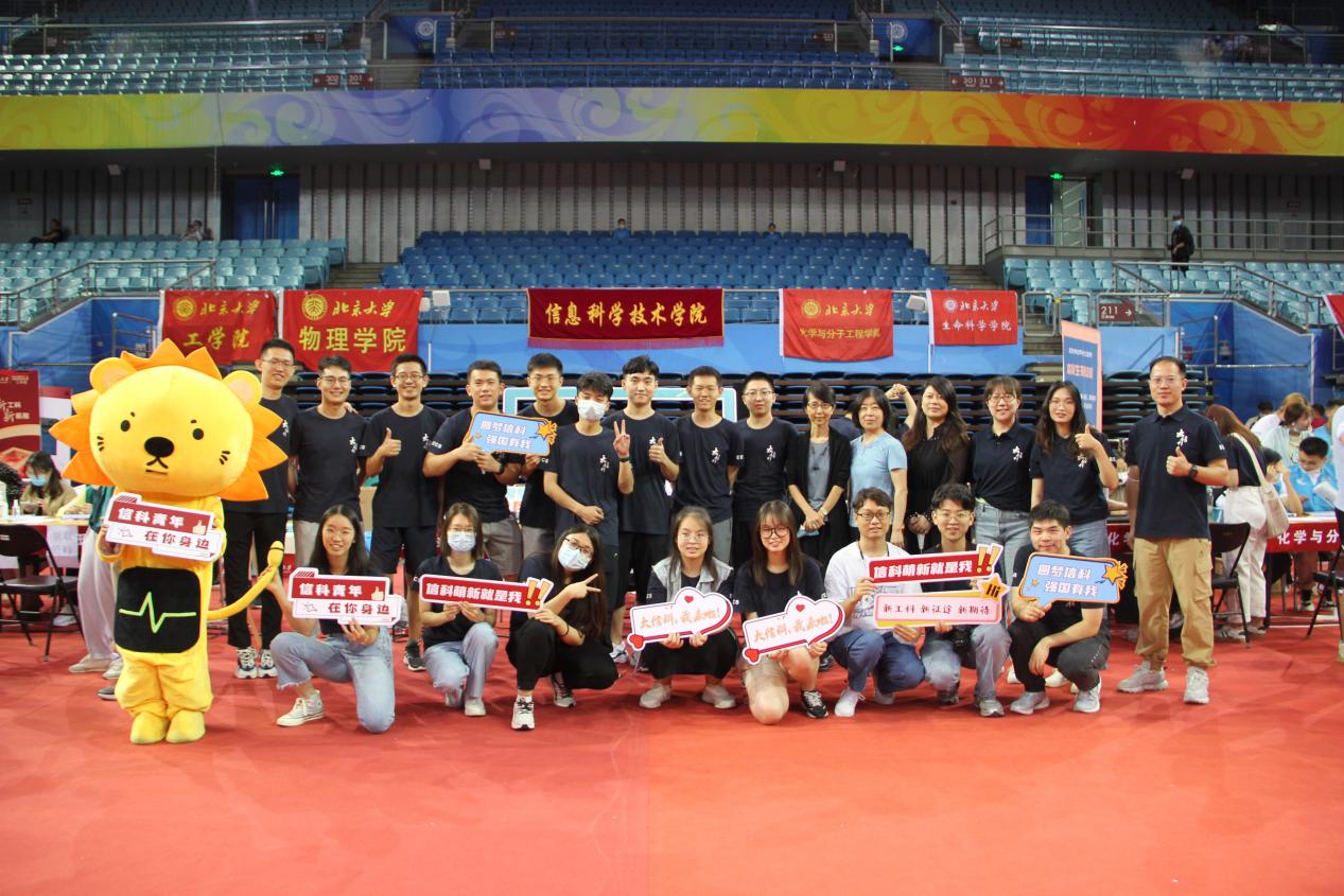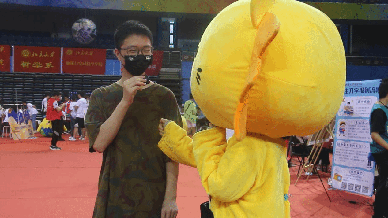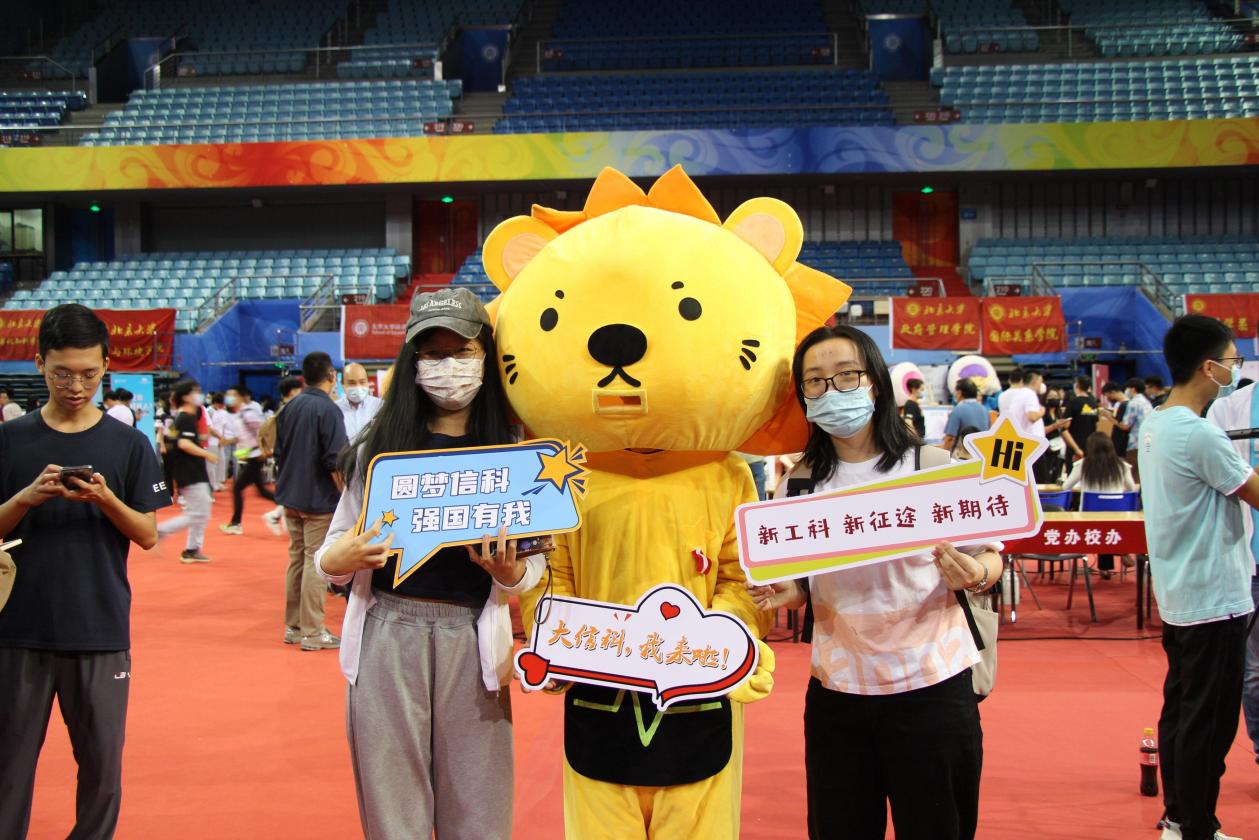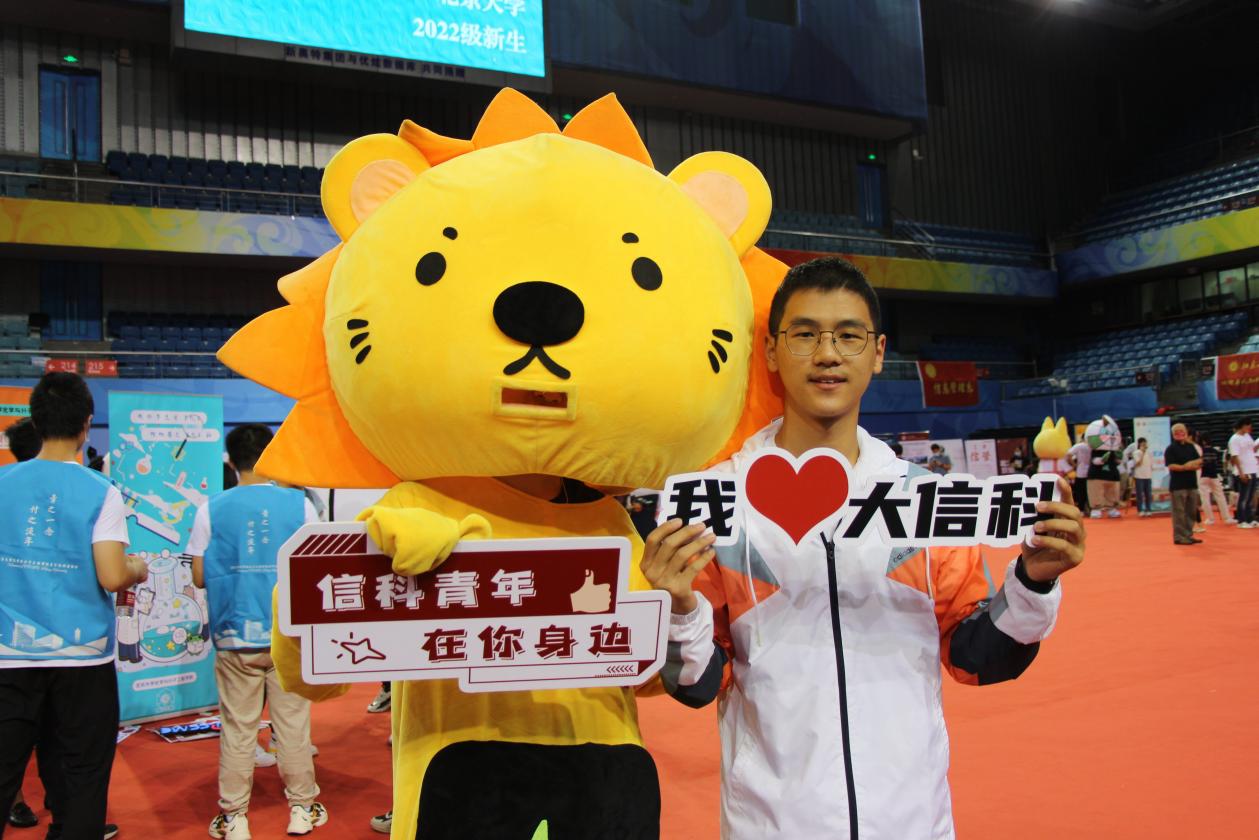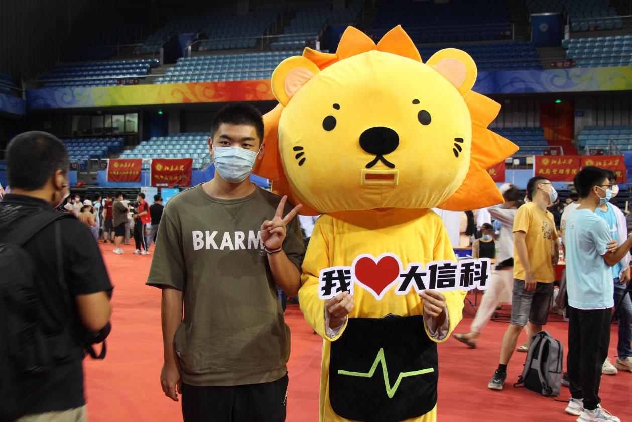 合影区,“攻城狮”无疑是最大的明星。或伸展双臂,或挥手致意,“攻城狮”搞怪的动作使得他很快与新同学们打成了一片,参与拍照的新同学,也在志愿者的帮助下,收获了自己与北大信科的第一张照片。