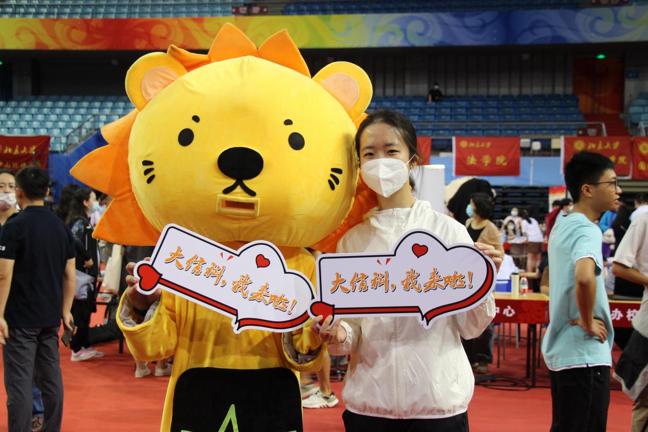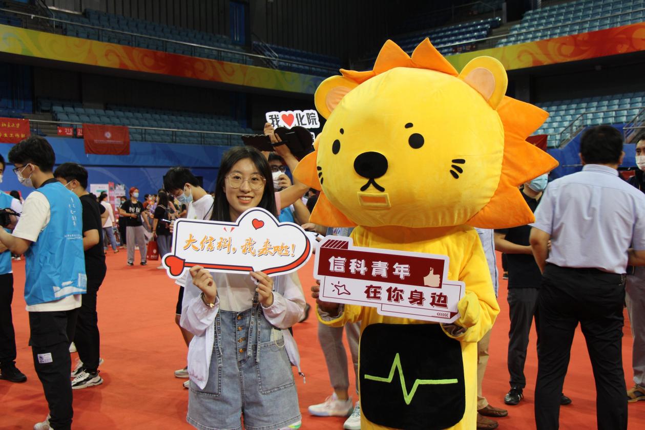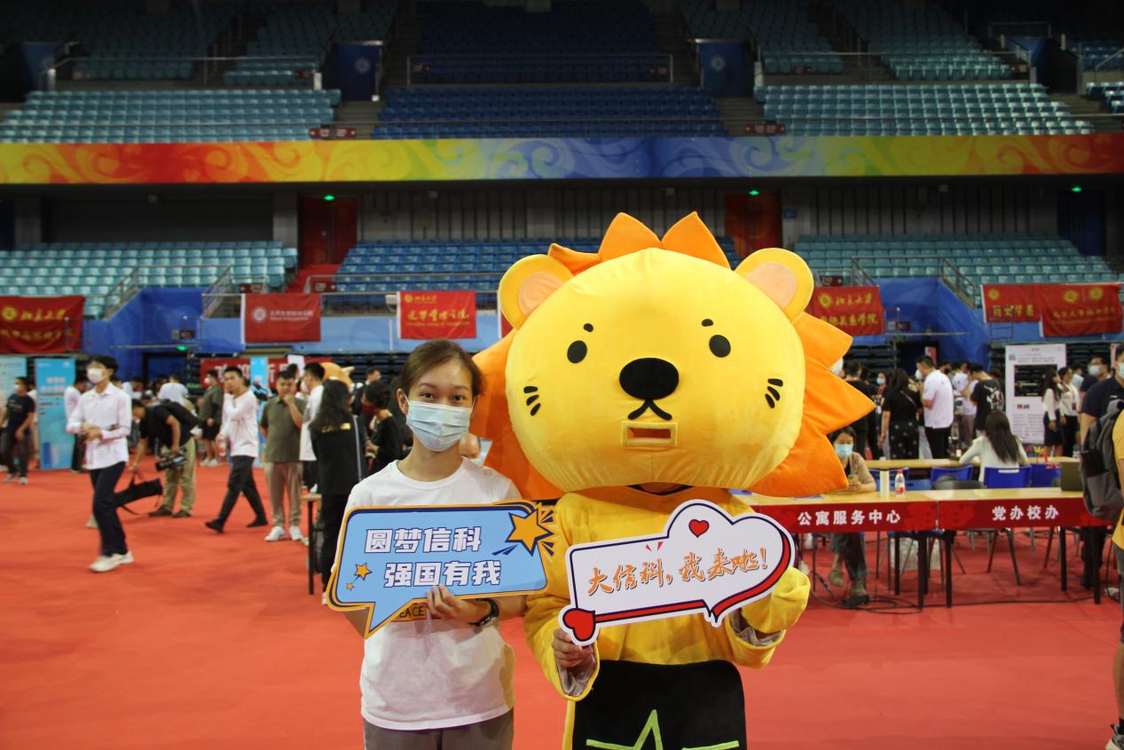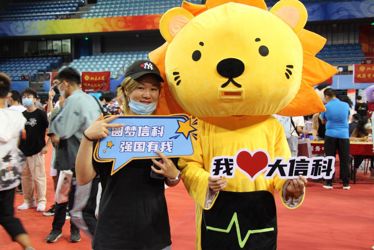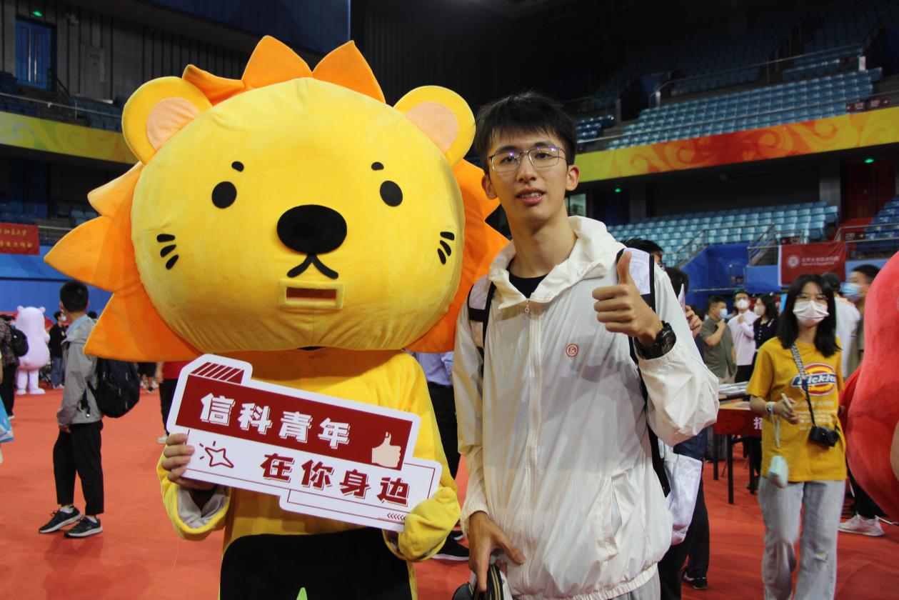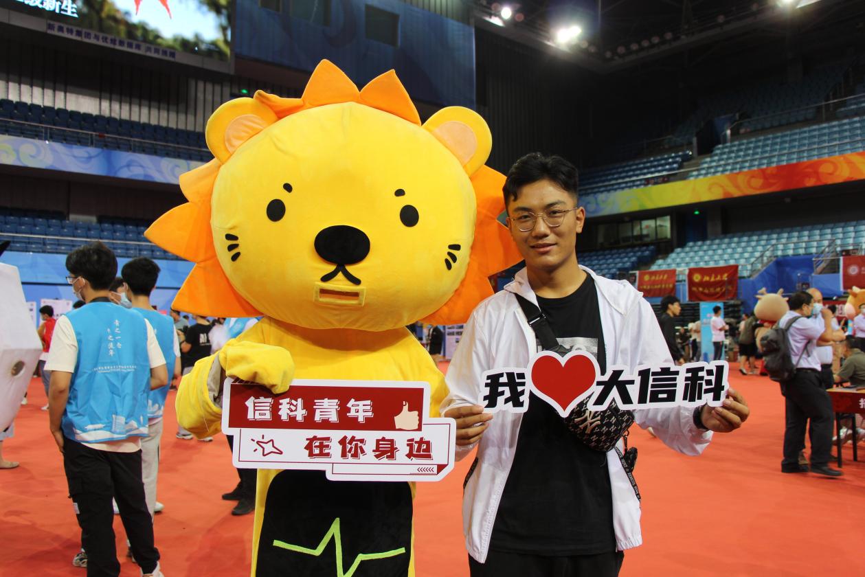 合影区,“攻城狮”无疑是最大的明星。或伸展双臂,或挥手致意,“攻城狮”搞怪的动作使得他很快与新同学们打成了一片,参与拍照的新同学,也在志愿者的帮助下,收获了自己与北大信科的第一张照片。