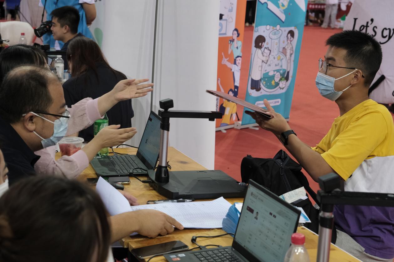 越来越多的同学踏入了燕园,走进了邱德拔,迎新会场内也逐渐热闹起来。老师与志愿者们耐心帮助新同学们整理物品、录入信息,“攻城狮”在工作区域里来回穿梭,为每一位新生带来属于燕园的第一份记忆。