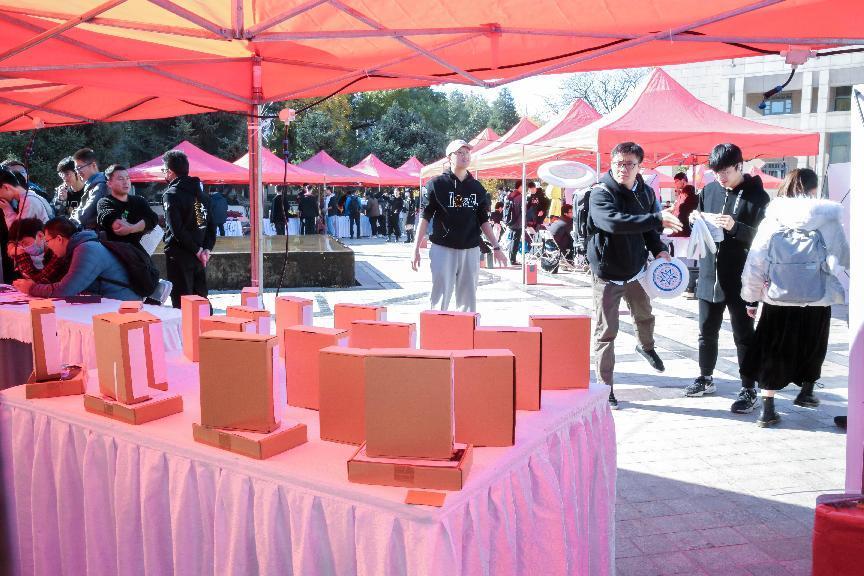 现场还设有文化体验区和互动区,大家可以留下属于自己的文化日回忆与感想,也可以对学校新工科建设事业建言献策,同学们纷纷在签名板上留言。信科吉祥物“攻城狮”穿梭在场地中与大家互动交流、合影留念。同学们在特制的文化日“通行证”上盖下了“攻城狮”图案的印章、贴上“攻城狮”主题贴纸。在兑奖处,同学们用游戏中获得的积分参与抽奖,陈列奖品的长桌前不时发出惊喜的欢呼。在信息行业企业展台,同学们与行业知名企业亚马逊公司的技术人员和人力资源负责人面对面交流,详细了解行业发展前沿和实习就业、职业发展情况。活动现场还为师生们准备了驱寒的姜丝可乐,以及主题口罩、消毒湿巾等防疫物