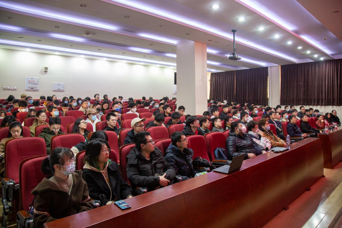 师生在理科二号楼2129报告厅进行集体观看学习。学院党委书记严敏杰,党委副书记贾方健,团委书记吕媛,团委副书记乔冠一、丁倩与120余名学生党员和班级团支书、院团委骨干等共同参与。