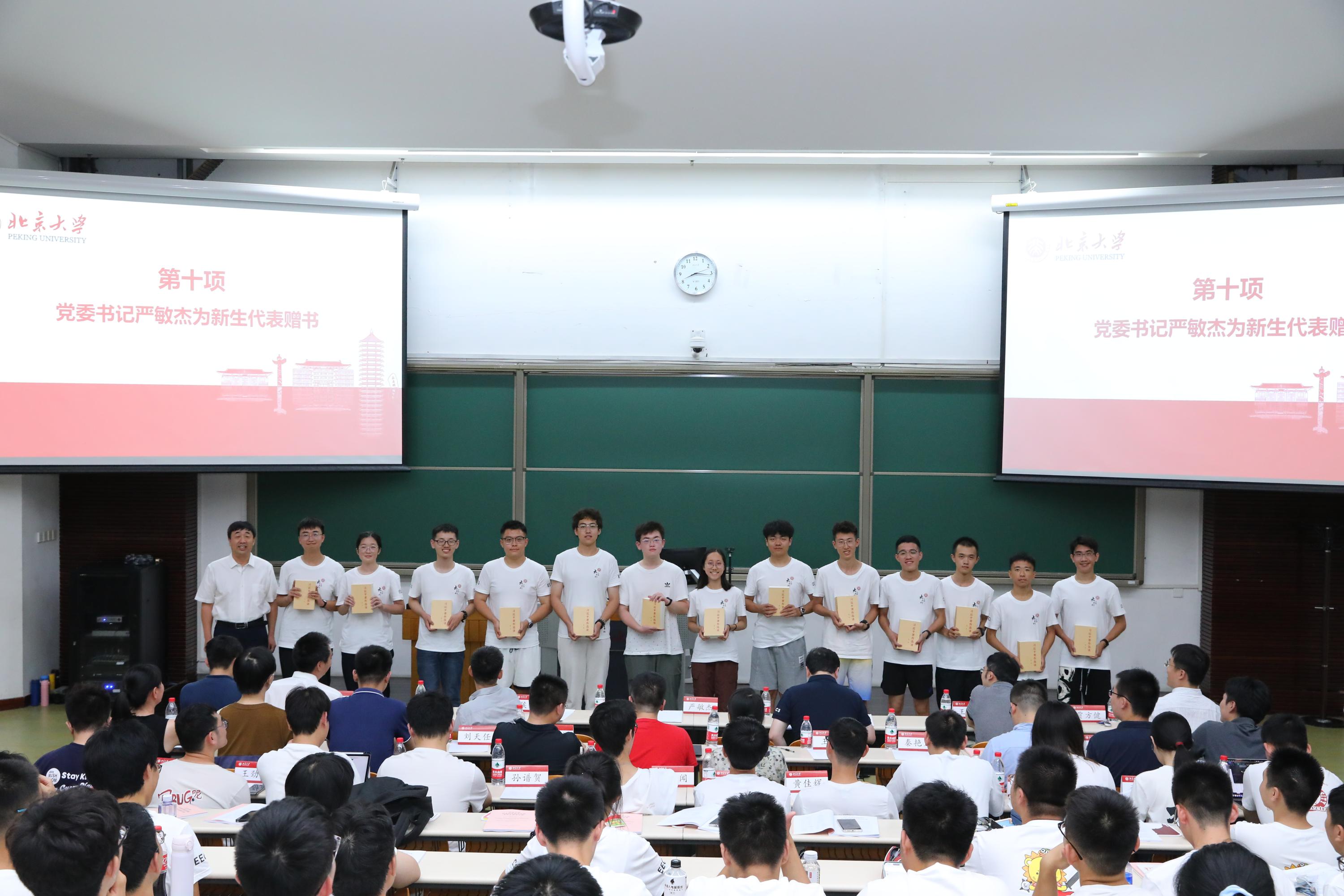 严敏杰书记向2023级各班新生代表赠书《习近平著作宣读》。书中收入了习近平总书记在2012年11月至2022年10月这段时间内的重要著作,生动记录了以习近平同志为核心的党中央团结带领全党全国各族人民进行伟大斗争、建设伟大工程、推进伟大事业、实现伟大梦想,推动党和国家事业取得历史性成就、发生历史性变革,开创中国特色社会主义新时代的历史进程。严老师寄语同学们在迈入人生新阶段的同时,深刻领悟和切实践行总书记对青年的殷切嘱咐,为实现中华民族的伟大复兴献上属于北大青年的力量。