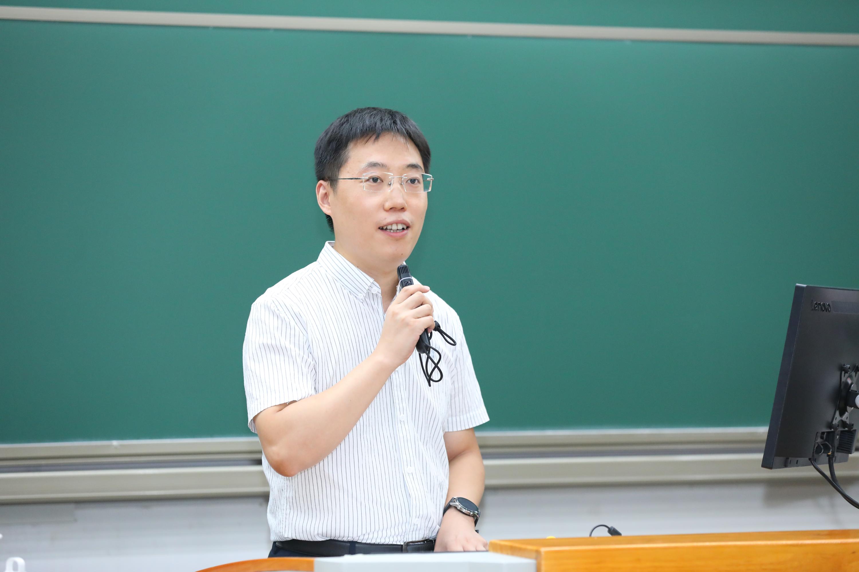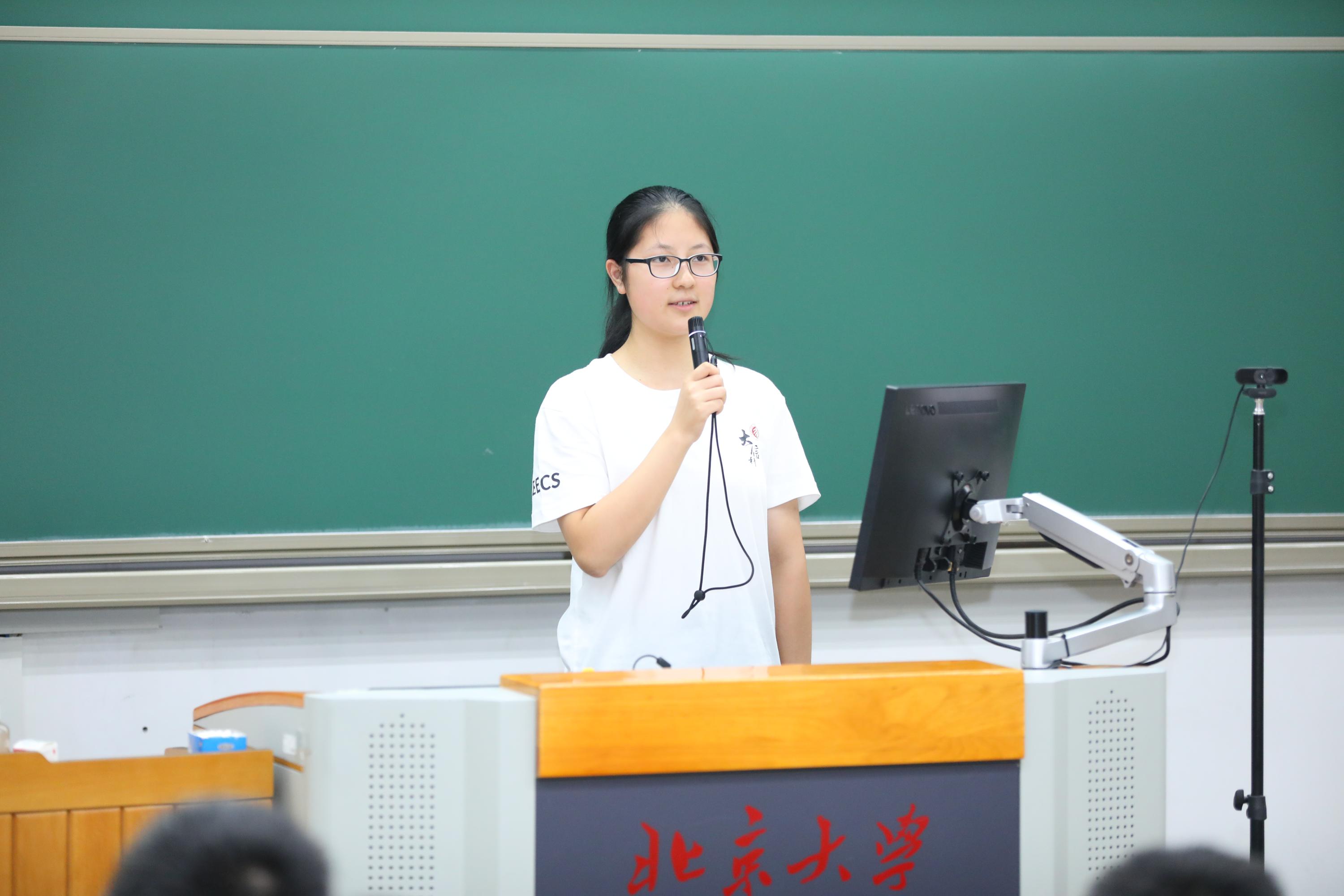 随后,邓斌副院长向大家介绍了学院的整体情况。他从学院基本情况、专业建设、学生管理和行政服务三个角度全面详尽地带同学们认识信科,展现了北大信息学科的悠久历史、庞大规模、宏阔目标。