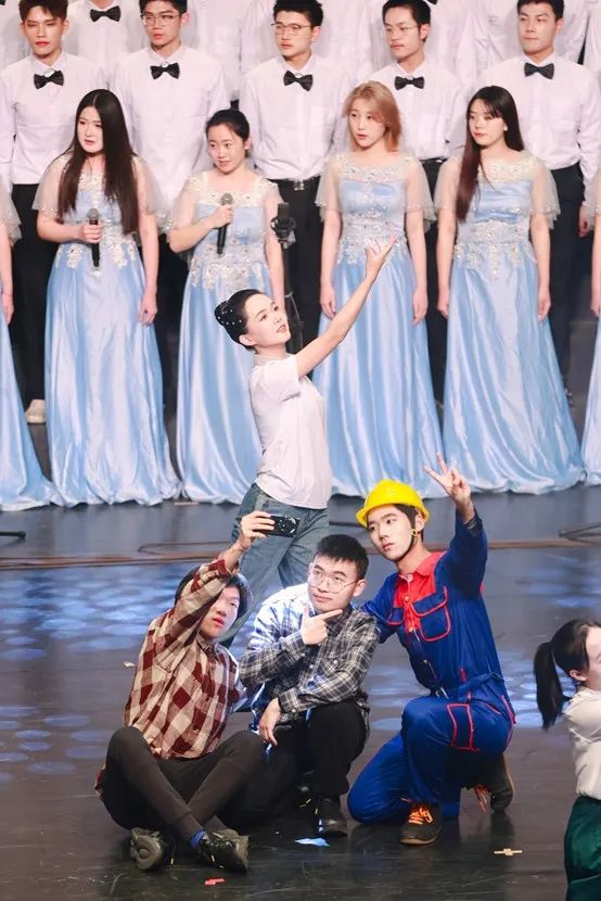 “回想起一二九,空气中充满了欢乐与努力的味道,不知不觉嘴角就挂起了微笑。我觉得大家都特别认真地对待一二九:合唱组同伴们的水平每一次都在比上一次精进,舞台组的同学也能看出是打磨过无数次的。后勤组的同学总是让我特别期待排练,每次发的零食都不重样,还办了集体生日会。学院老师们的支持更让我感动,他们毫不吝啬地给了我们最好的排练条件,还在比赛前夕到场慰问,给了我非常大的鼓励。”这是参与“一·二九”的一位23级小狮子的肺腑之言。