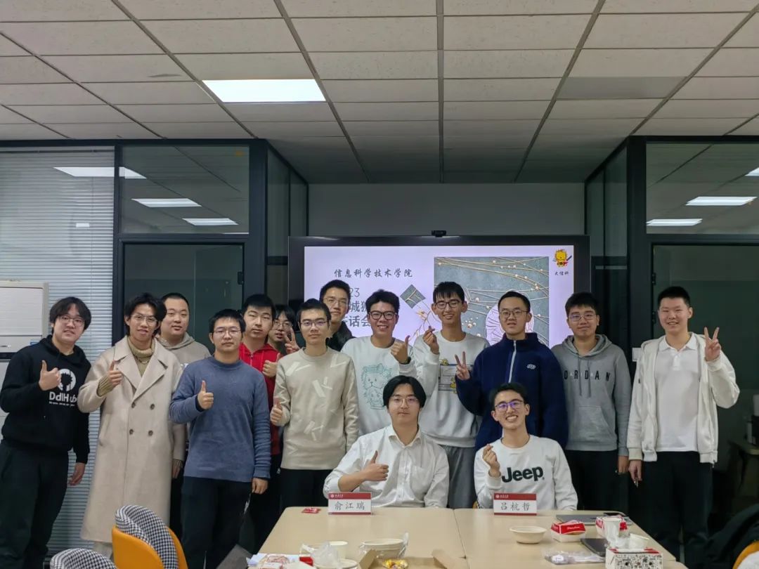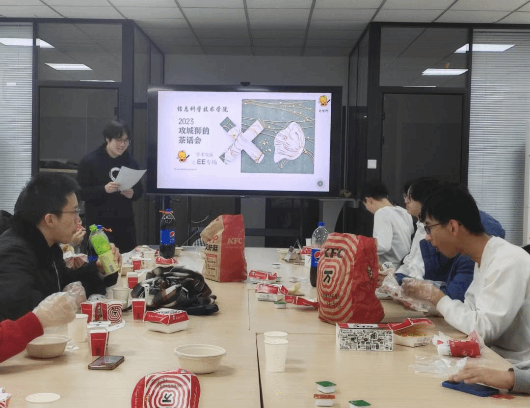2023年12月17日中午,“攻城狮的茶话会—学术交流EE专场活动”于理科一号楼1127学生活动室成功举办。2023级电子信息科学(量子电子学)直博生、国家奖学金获得者、2022级信班辅导员吕杭哲同学,2020级应用物理学专业本科生、国家奖学金获得者俞江瑞同学受邀与15名信科学院低年级同学共同参与本次活动。AV研究所