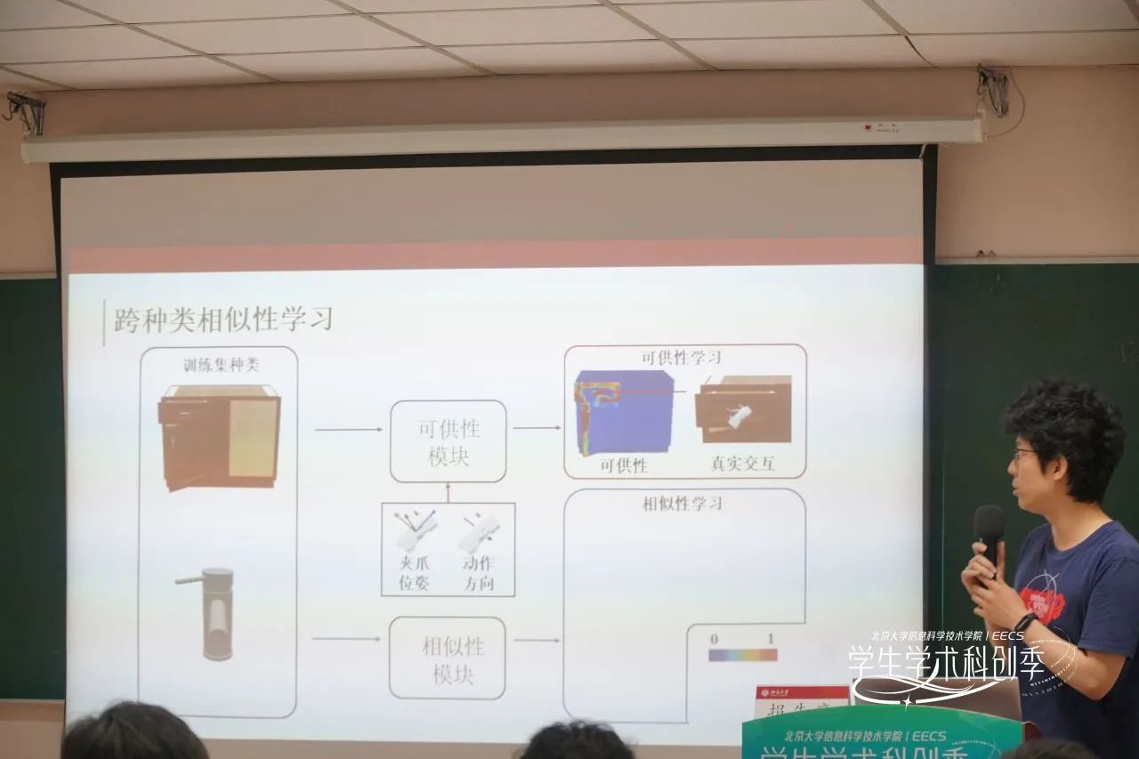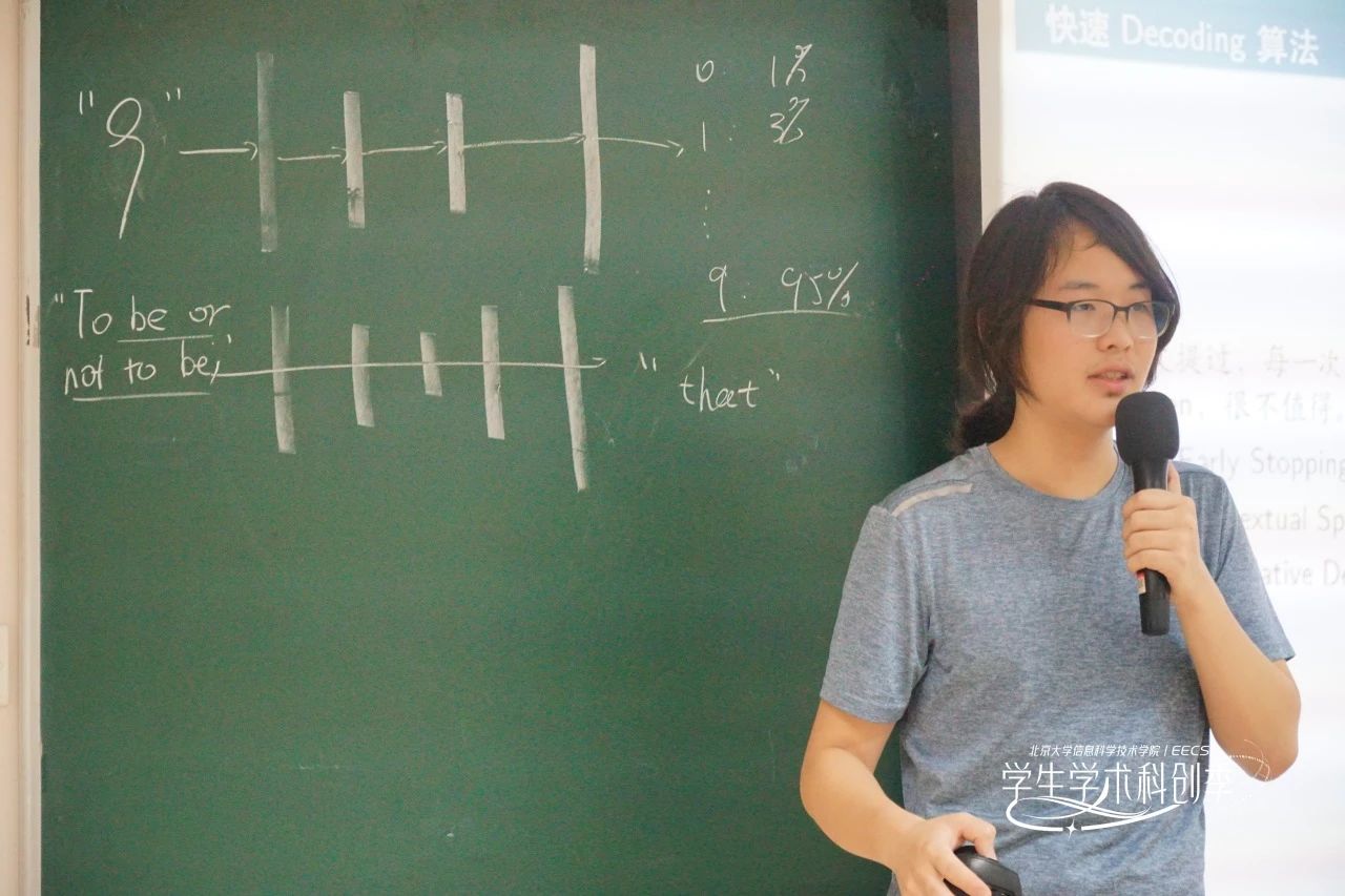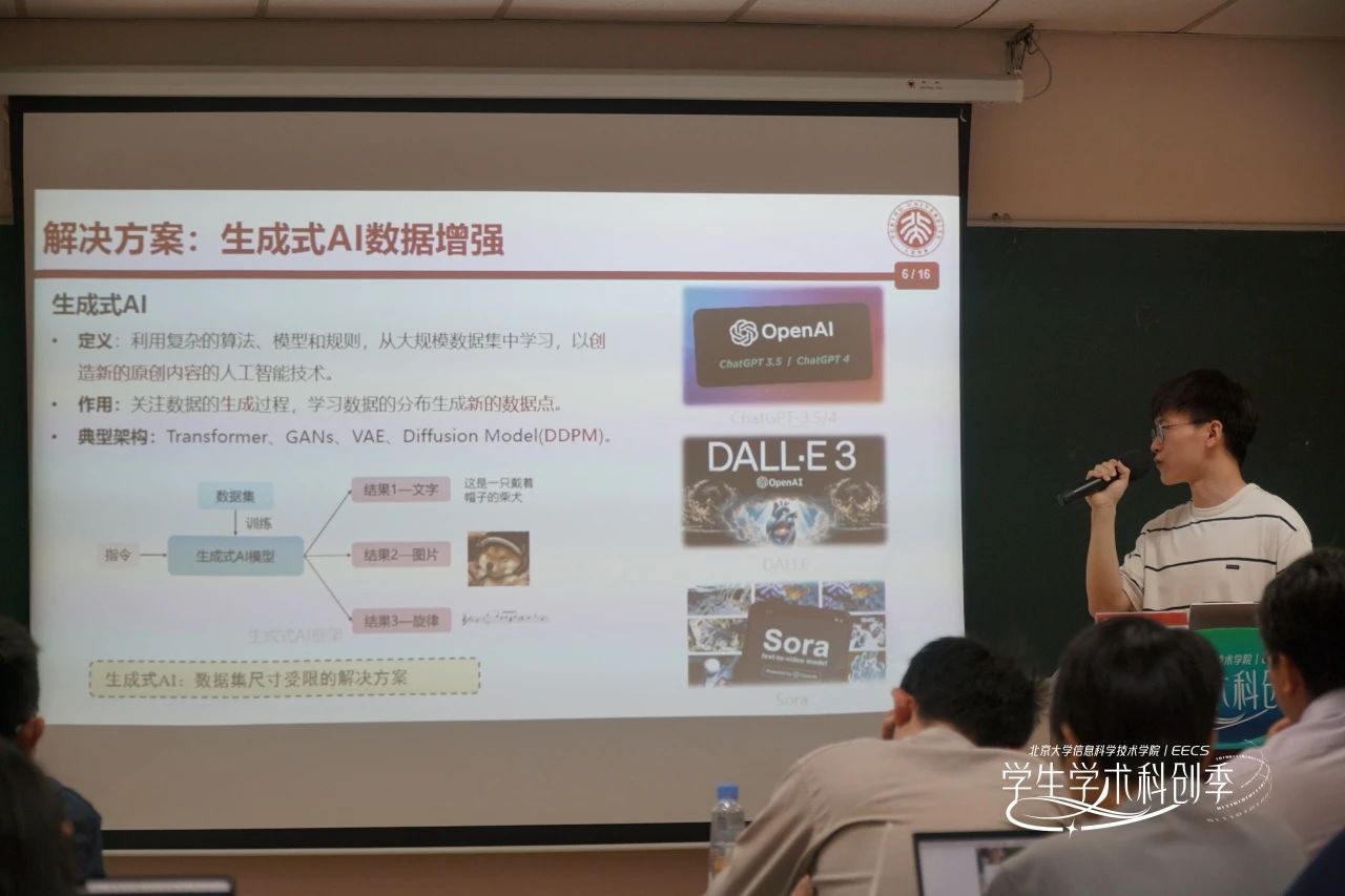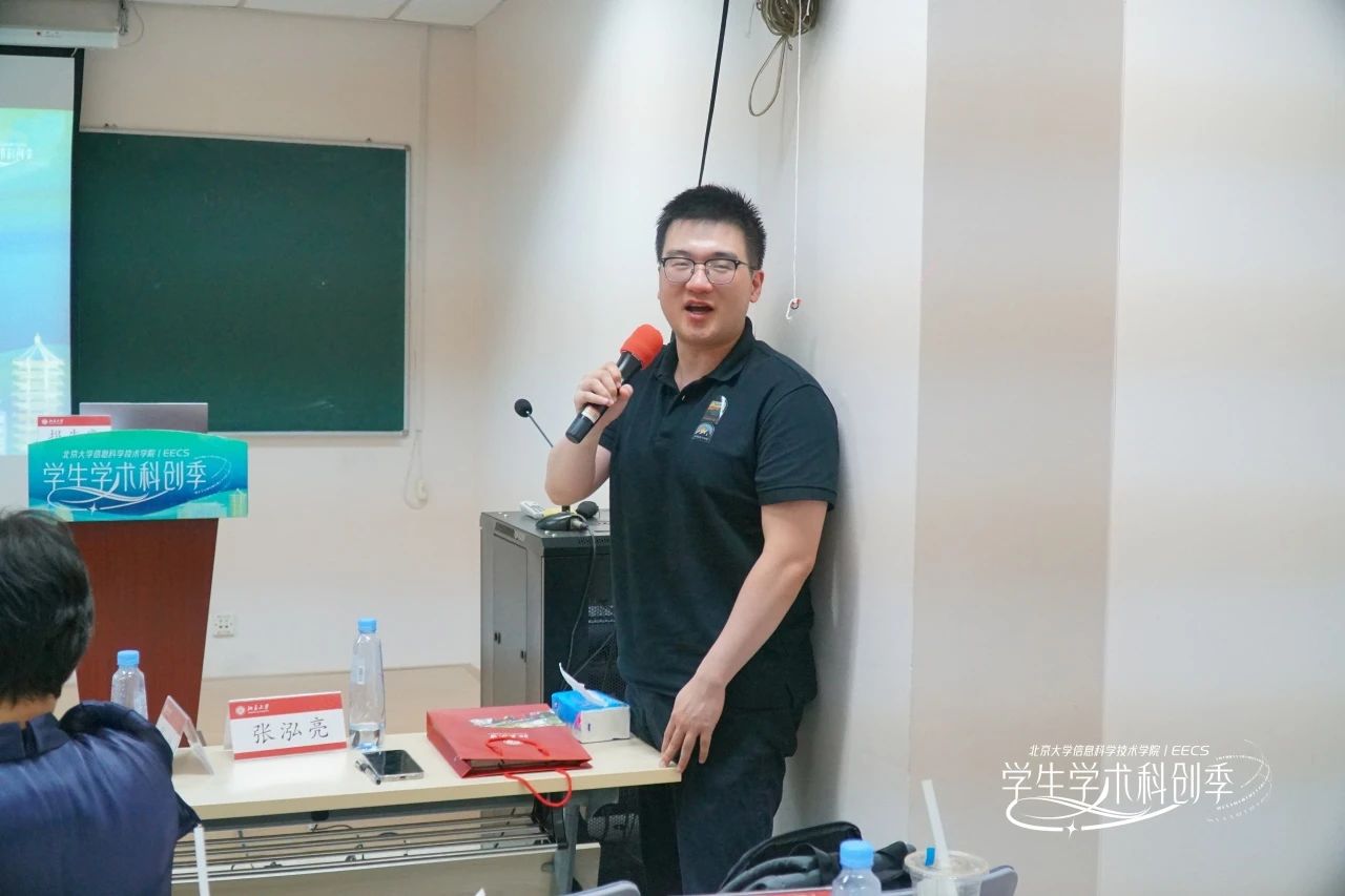 在亮点报告环节中,同学们用简洁明了的语言,介绍了自己的科研项目和成果。同学们的研究领域涉及普通微控制器上实现内存高效的语言模型推理、滚动混合比特脉冲模式重建高帧率高动态范围视频、基于超大规模可重构超表面的近远场混合雷达技术研究等。同学们利用图表和实验数据,生动而具体地展示了自己的研究成果,让现场观众对信科学院本科生科研成果有了更深入的了解和认识。