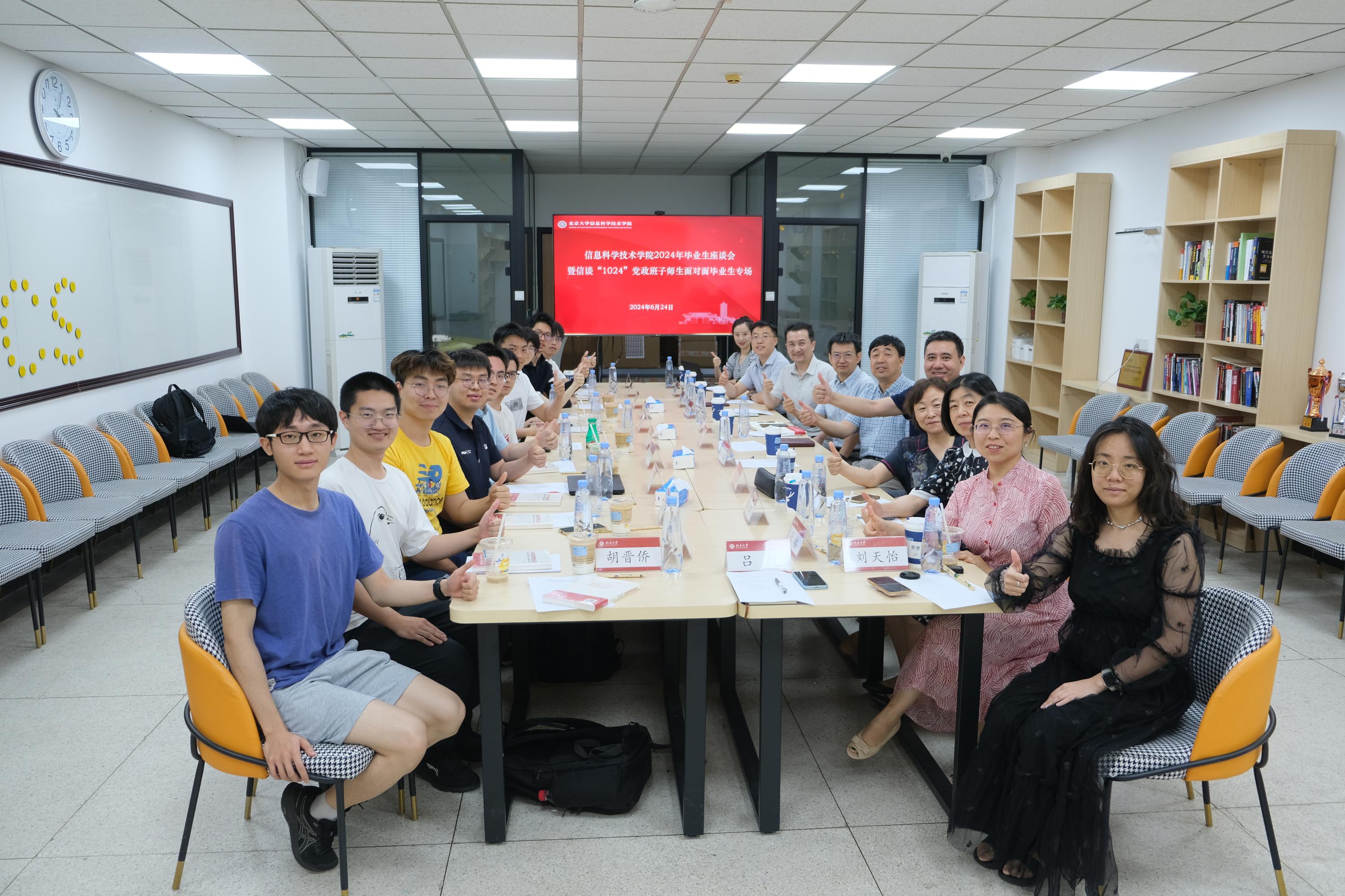 于理科一号楼1127会议室举办2024年毕业生座谈会暨“信谈1024”党政班子师生面对面毕业生专场活动。学院党委书记严敏杰,院长侯士敏,副院长陆俊林,副院长邓斌,党委副书记贾方健,学院离退休教师代表、关心下一代工作委员会委员刘志敏,教务办主任董晓晖,党政办副主任张铭,学工办主任李子奇,团委书记吕媛,团委副书记刘天怡等学院领导老师,与毕业生代表亲切交流。活动由学工办干部、2020级年级辅导员付晓倩主持。