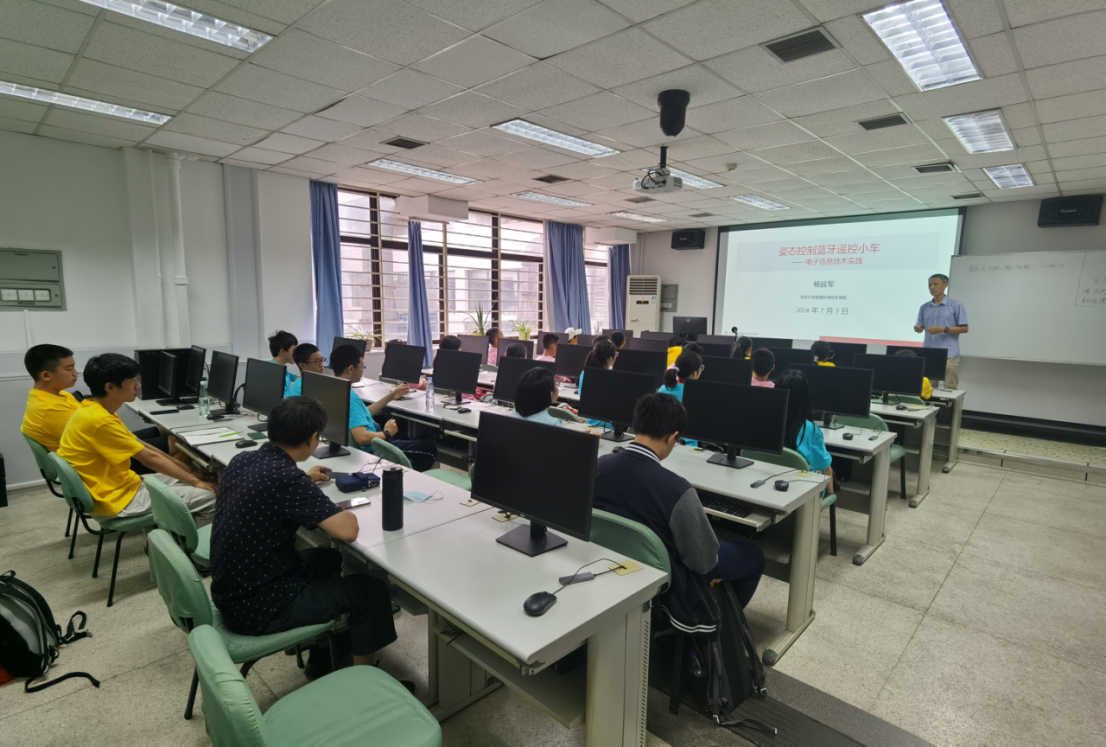 7月7日的活动同样精彩纷呈。上午,姿态控制蓝牙遥控小车电子学动手实验课程,激发了营员们的创新思维和实践能力。AV研究所