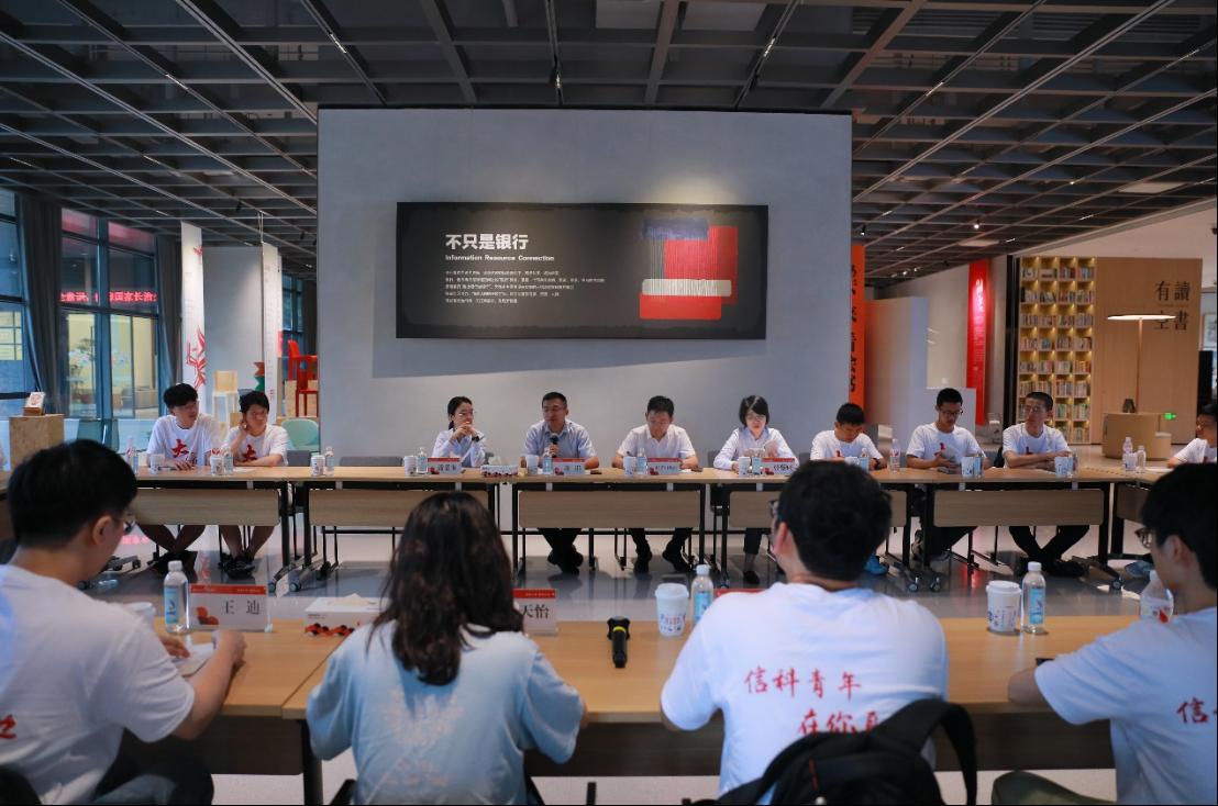 16日下午,实践团前往泰隆银行进行参观和座谈。刚进入大堂,同学们就惊叹不已。这家银行的大堂没有传统银行中的柜台,而是一个对当地特产,艺术品的展览;再往里走,是一个安静,雅致的图书区,为当地市民提供借阅和自习空间;接着是一块各式各样精美的椅子的展区,最靠里则是AV研究所墙和会议区。座谈会上,银行行长、经理等领导为同学们详细介绍了银行的主要业务——为小微企业提供信贷服务,以及企业管理方式和优秀文化。同学们纷纷踊跃提问,从疫情后的经济形势,到ai技术在审核贷款条件上的应用,负责人一一详细解答,让大家收获满满。