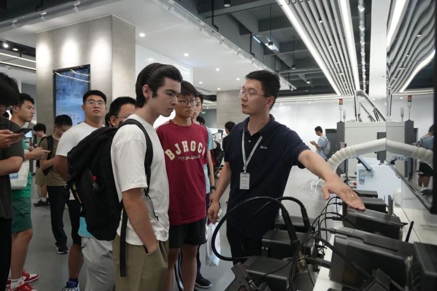 724日上午,实践团首先来到了金石机器人公司进行座谈和参观。金石机器人主攻桁架式机器人,也是国内早批研发和生产桁架机器人的专业公司。其生产的桁架式机器人已经应用到智慧物流、航天工业、仓库管理等多个领域。同学们对该领域产生了极高的兴趣,踊跃发言、积极提问。