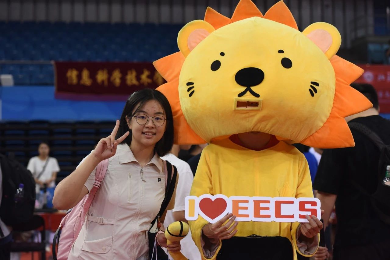 的吉祥物“攻城狮”也在迎新会场欢迎着学院的新成员。憨态可掬的外表吸引着同学们纷纷与它合影留念,他们青春洋溢、满怀憧憬的笑容和攻城狮一起定格在一张张相片里。