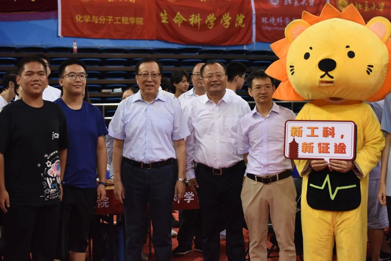 上午,学校党委书记郝平、校长龚旗煌等来到学院迎新台,亲切地与新同学们交谈,送上新学期的祝贺和问候,也对现场的学院老师和志愿者表示慰问。