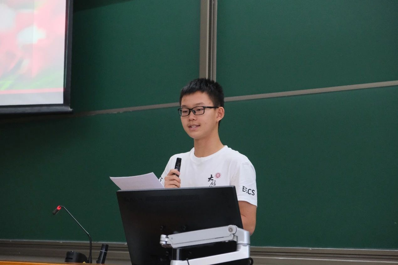 2022级宋海博同学作为在校生代表发言。首先,他向初入燕园、即将踏上军训征程的新同学们,致以了欢迎和祝福。他分享了自己参加军训的宝贵经历,军训使他学会了在困难面前不屈不挠,在挑战中勇于担当。最后,他号召2024级同学们借助军训的宝贵契机,积极向党组织靠拢。