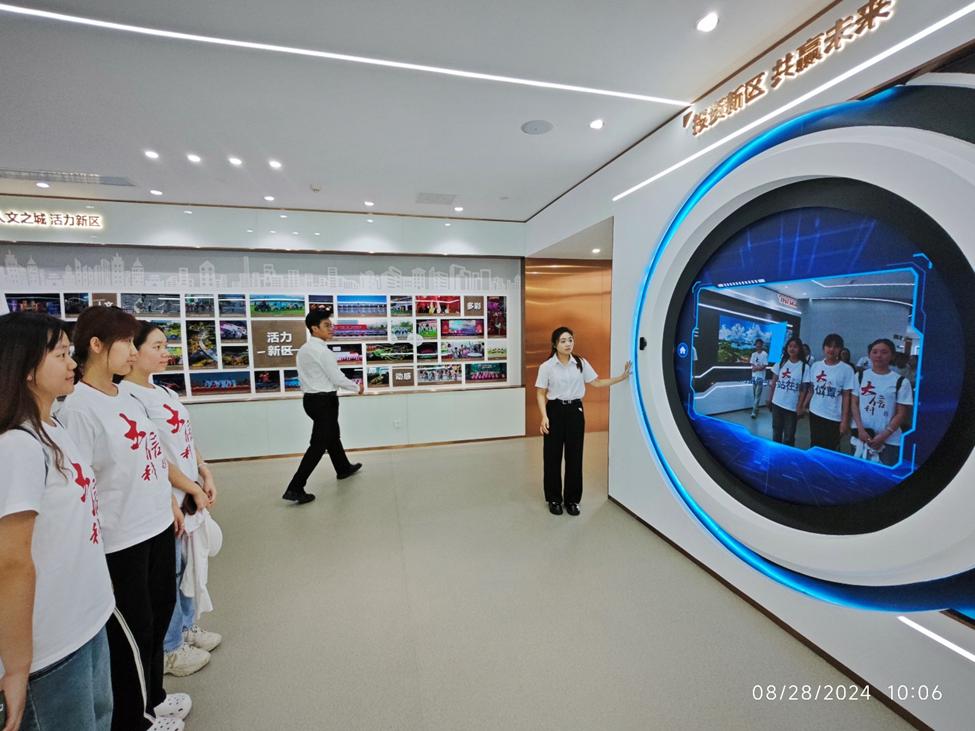 8月28日,是实践团在肇庆的最后一天。实践团来到了肇庆新区企业智慧共享中心,参观了中心的展示大厅,了解了智慧科技在城市管理、交通规划、环境保护等方面的应用。中心负责人向师生们展示了通过大数据、云计算、物联网等技术实现的智慧城市解决方案,让师生们对智慧科技的潜力和未来充满了期待。