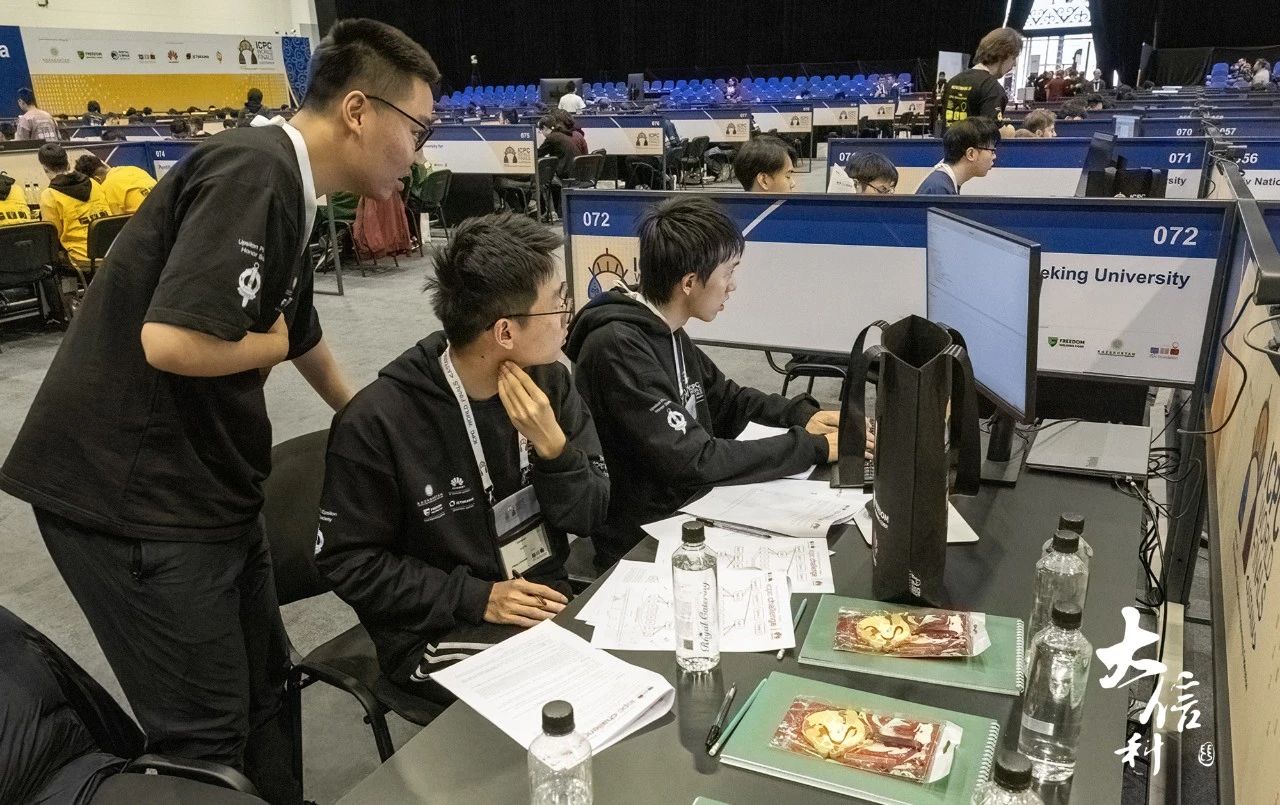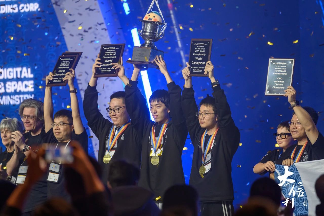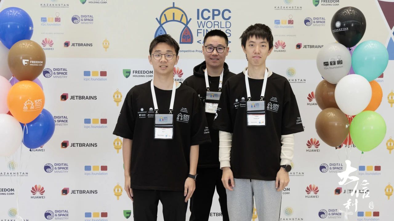 2023级本科生王蔚澄、王相文、徐安矣组成的队伍,在两位领队教练——计算机学院罗国杰老师及信科学院张勤健老师的带领下,获得全球总冠军。