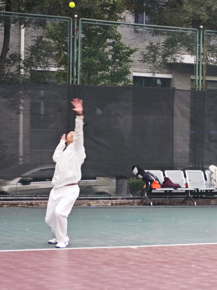 双打比赛开始,城环二队先发。城环二位男生明显都是练球不久,移动和击球都较为生疏,第一局中文信科轻松破发。第二局由中文信科沈千帆发球,骤降的气温让他当天的发球手感极差,但老球员的自觉使他悲壮而决绝地,哪怕面对双下选手都选择发双上,连续的双误就这样送出了一局。接下来,城环二队通过出其不意的长短球迫使对手失误,成功保发一局。不过由于实力的落差,一旦进入相持,城环二队的选手就明显占劣,最终24输掉了比赛。