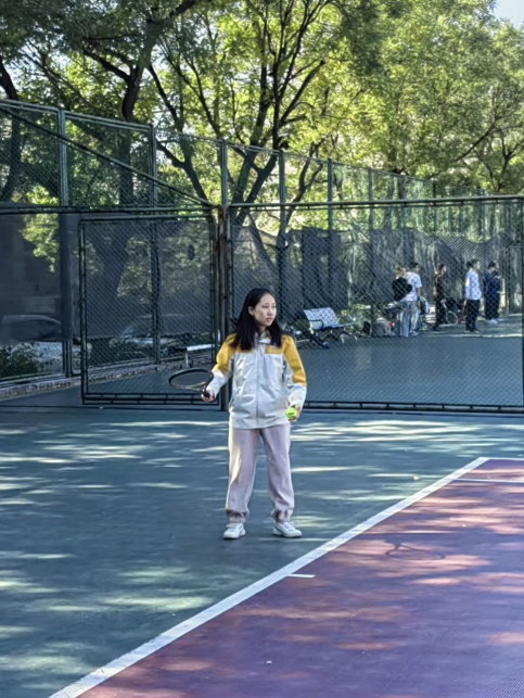 信科一队和医学一队的网球比赛在中午开始进行。即使是中午,天气也十分寒冷阴沉。