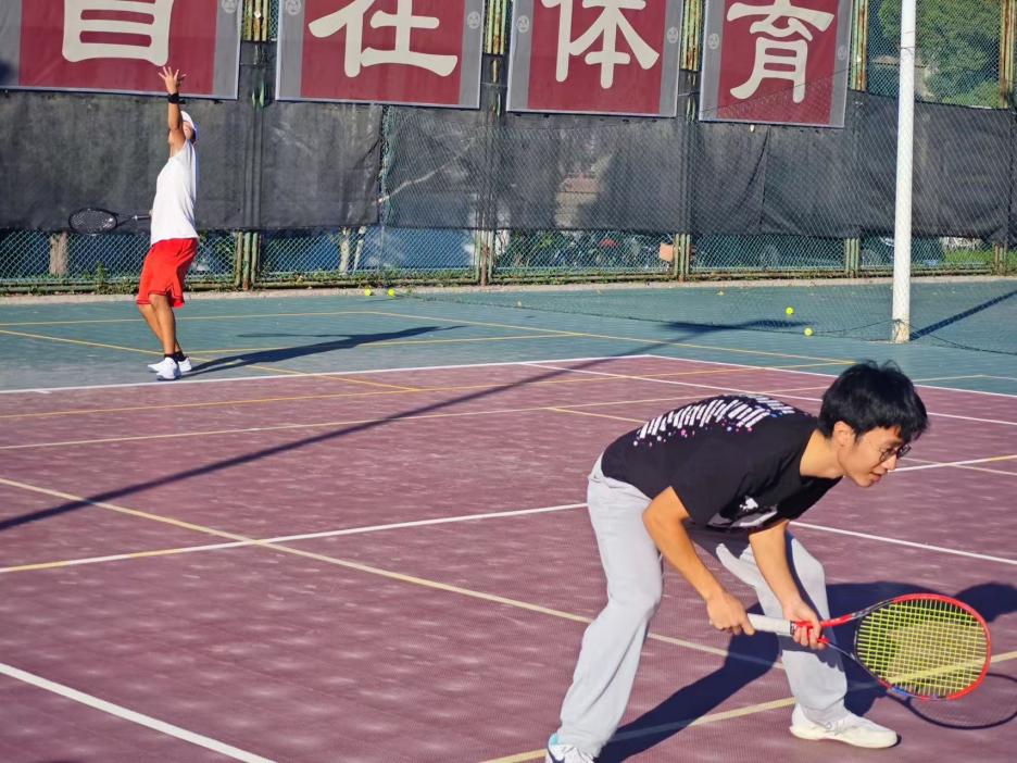 午饭回来,第二盘双打由信科一队选手李瑞和郑睿扬迎战医学一队混双组合。这盘比赛中,信科一队战术执行坚决,控制失误,抓住机会进攻,而反观医学一队,男队员屡次发出双误,女队员的接球出现很大问题。最终信科一队没有给医学一队任何机会,以60赢下比赛。