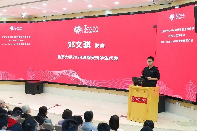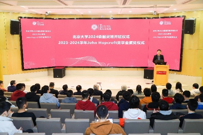 对各位老师、同学和嘉宾的到来表示欢迎,并向加入图灵班的2024级新生以及获得John Hopcroft奖学金的图灵班同学表示祝贺。